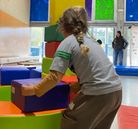 Aquesta sessió desenvolupava el contingut psicomotor de “Moviment” i és que les estudiants van recrecrear una excursió al bosc d’en Bruc on els infants de la classe de la Vaca Xula havien de trobar els follets màgics repartits per tota la sala de psicomotricitat.