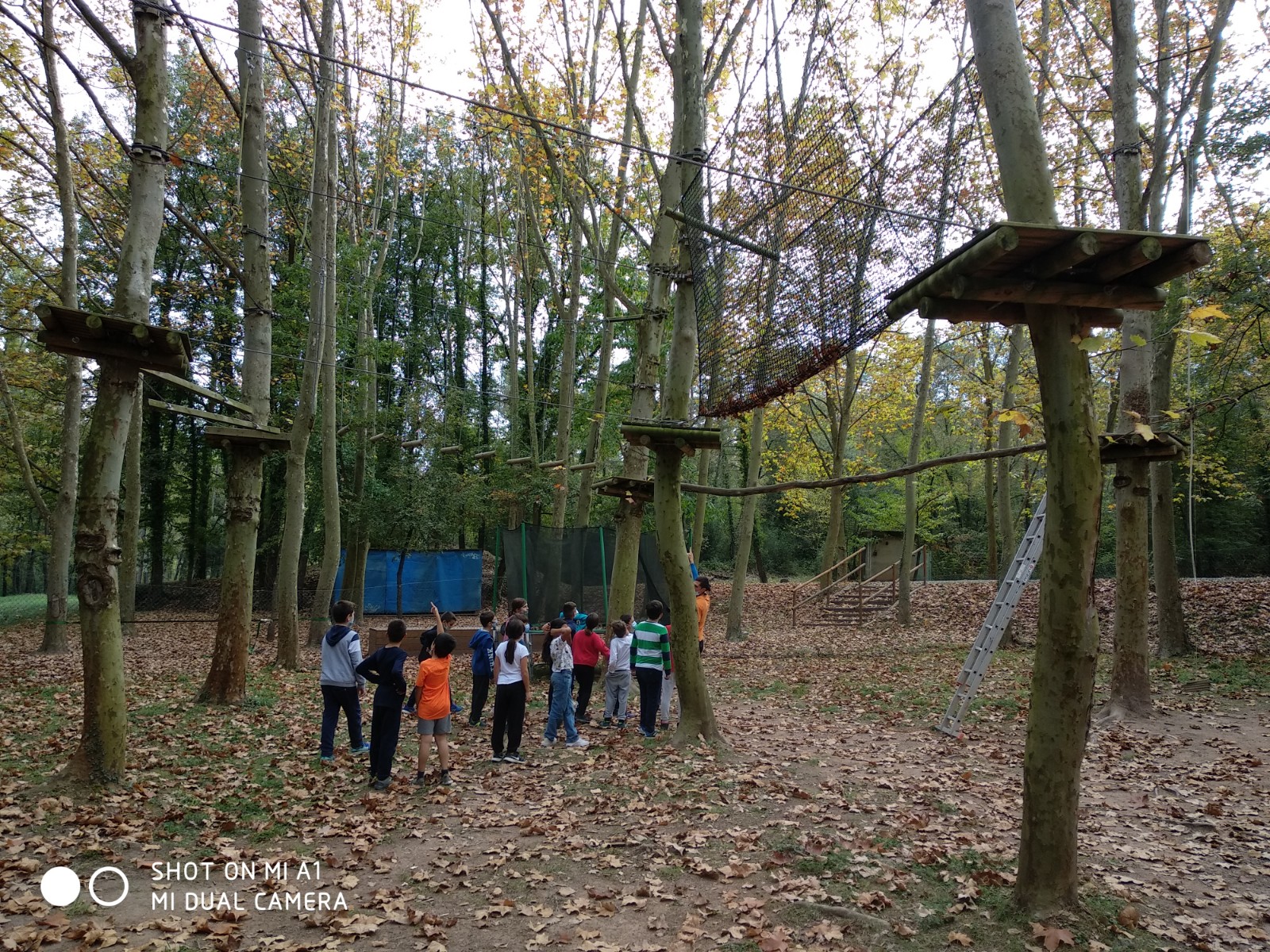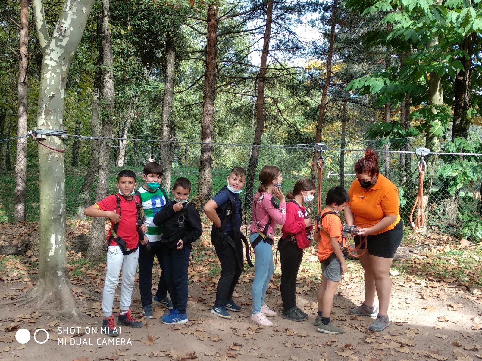 Hem fet roco, conegut els animals que viuen a la granja de la casa i a la tarda…hem caminat pels arbres! Un dia ple d’aventures…i encara ens queda la traca final!