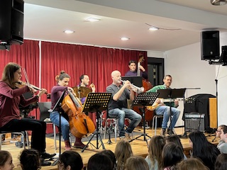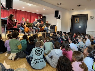 Aquest matí els infants de segon i tercer han anat a l’escola de música a escoltar un concert ofert per uns grans músics. Ens han transportat a diferents països del món i hem participat quan ens ho han demanat.