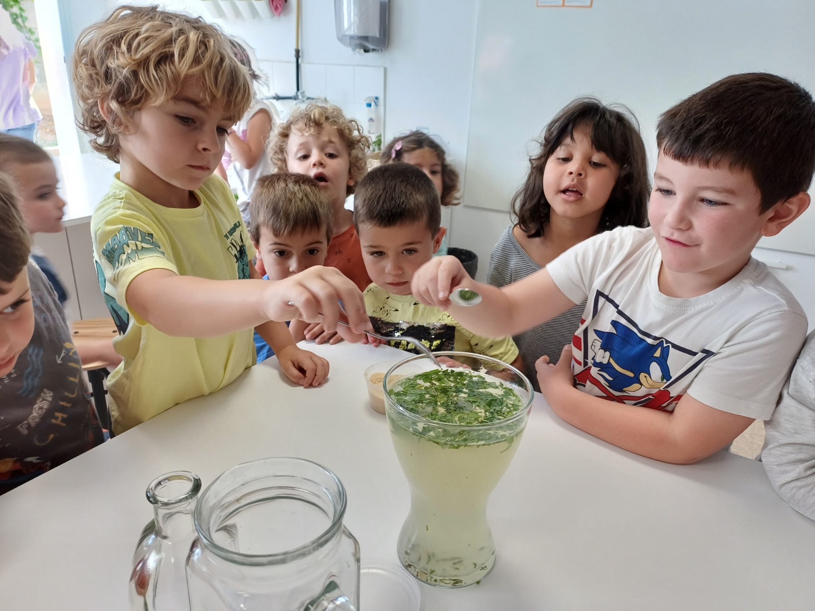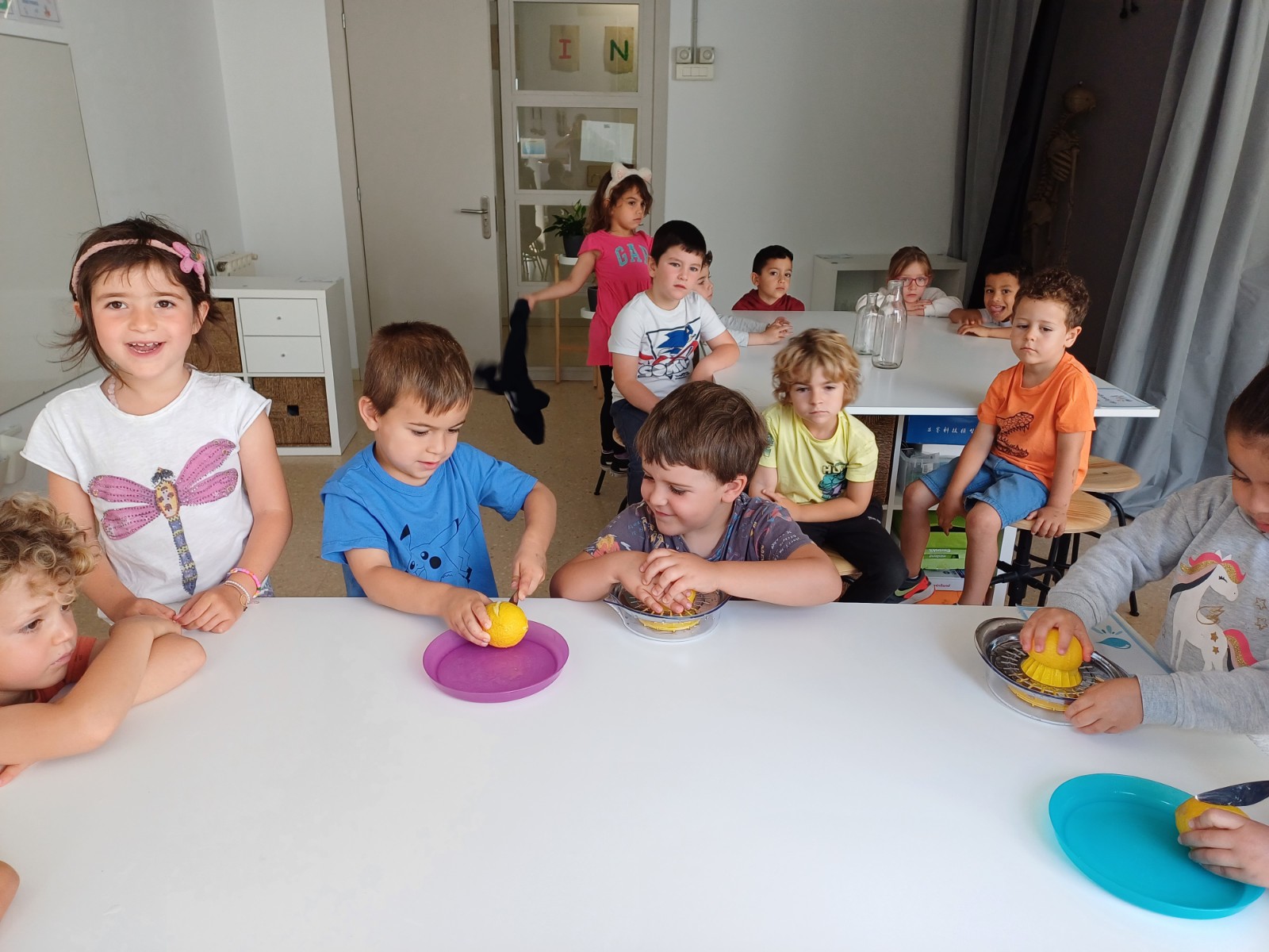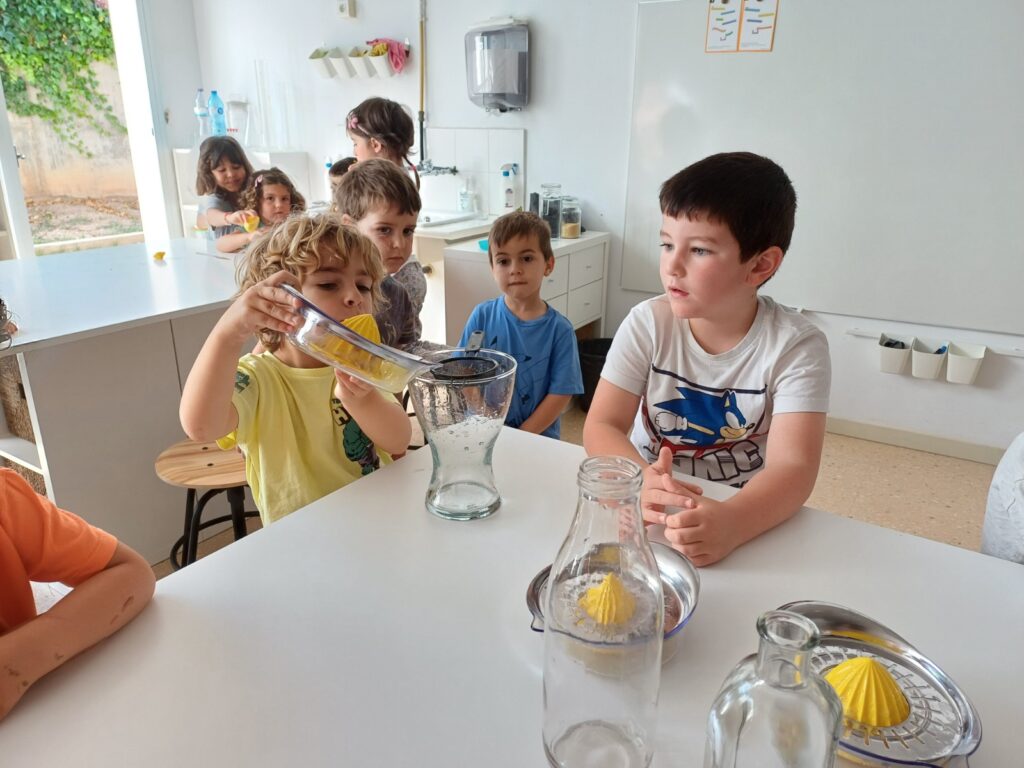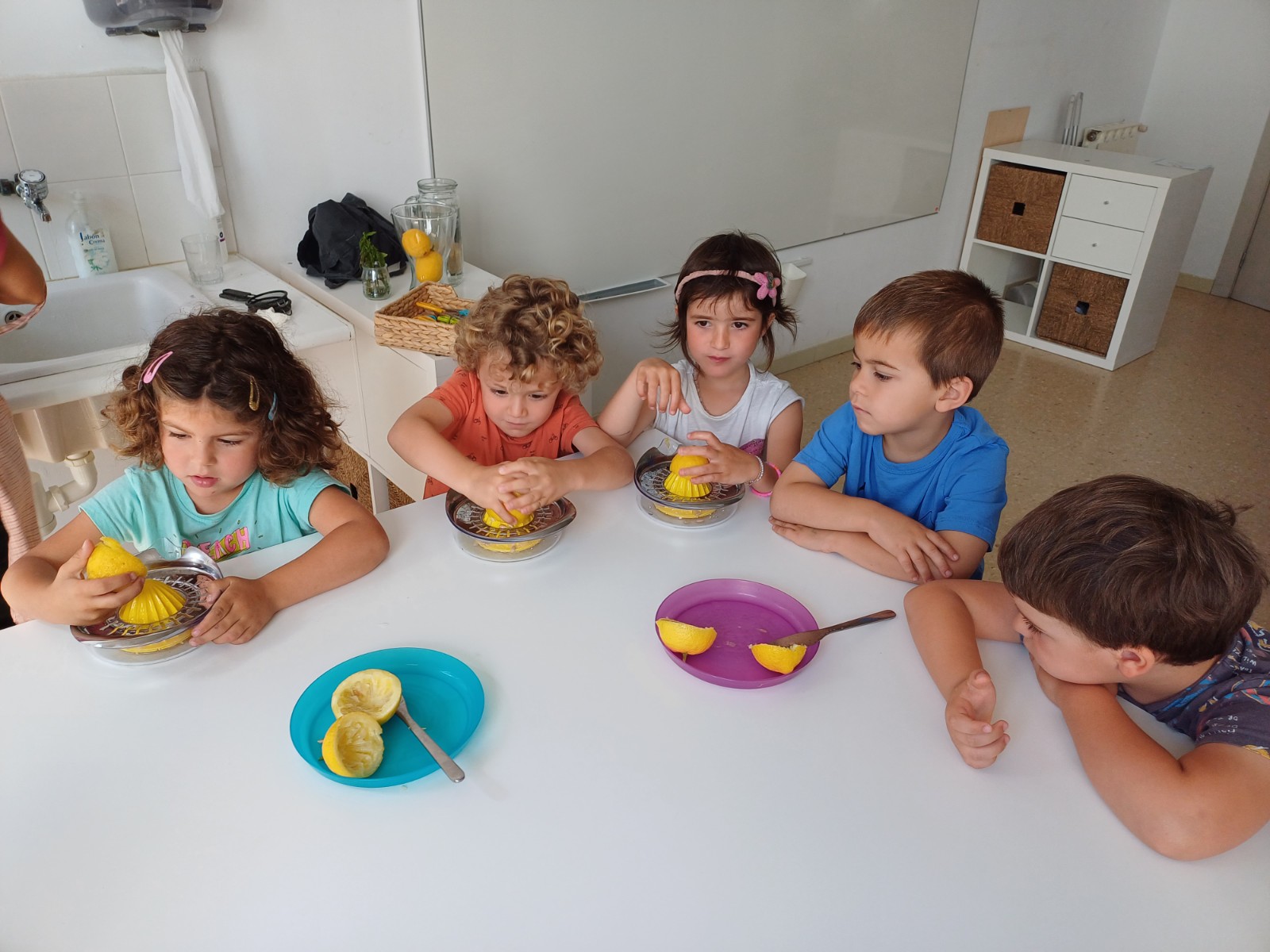 Hem fet llimonada! Hem aprofitat per anar a la sala de ciències dels infants de Primària. Un espai desconegut per a nosaltres. Un espai suggeridor, amb molt material i moltes coses per descobrir. Un espai de ciència. Entre totes i tots hem fet la llimonada. Fins i tot hem sortit a l’hort i hem agafat menta.