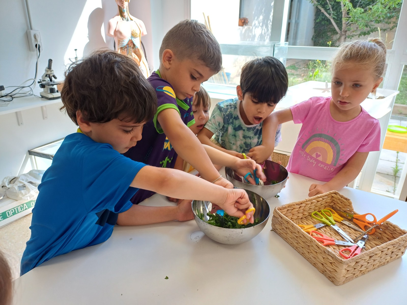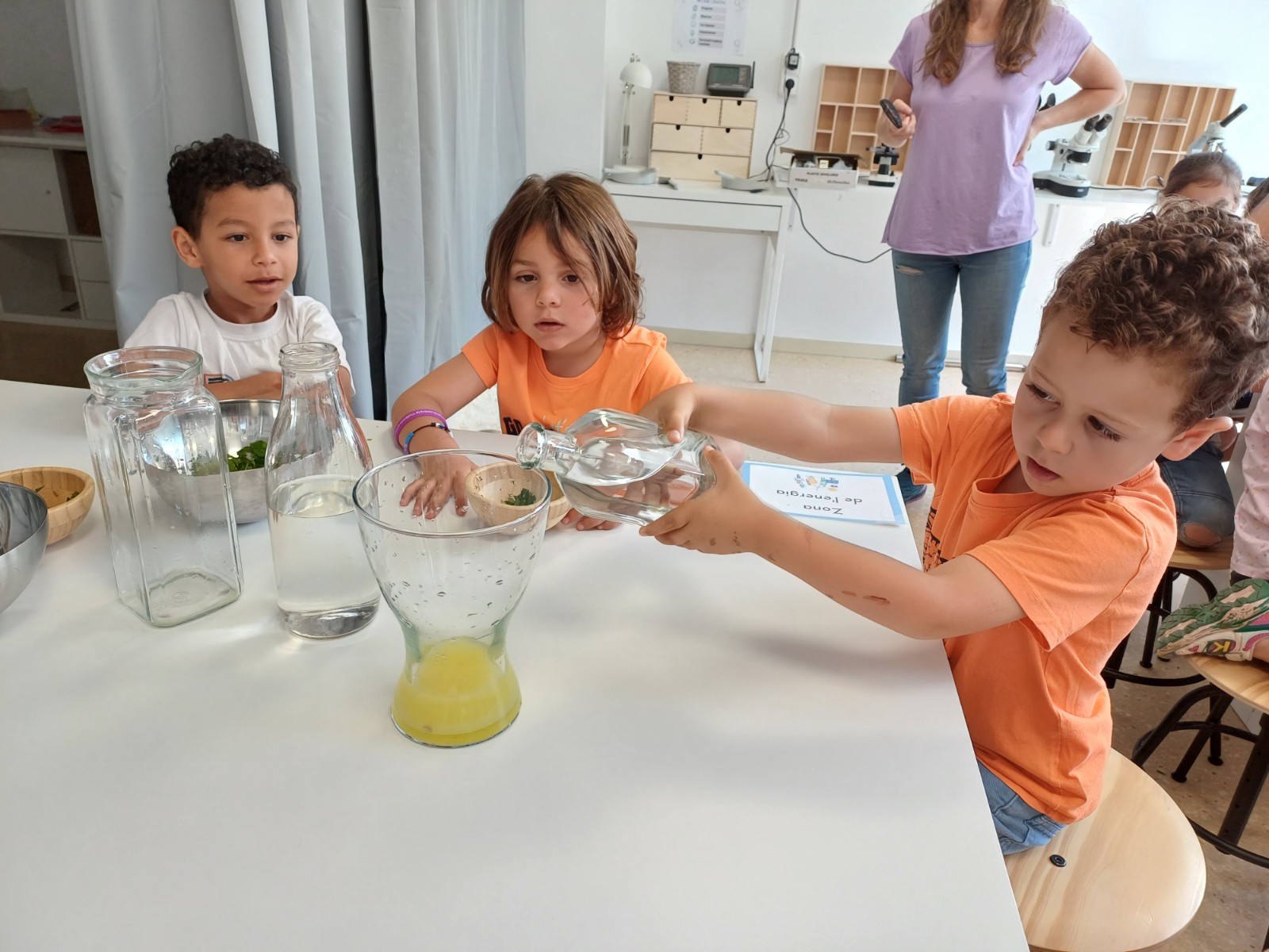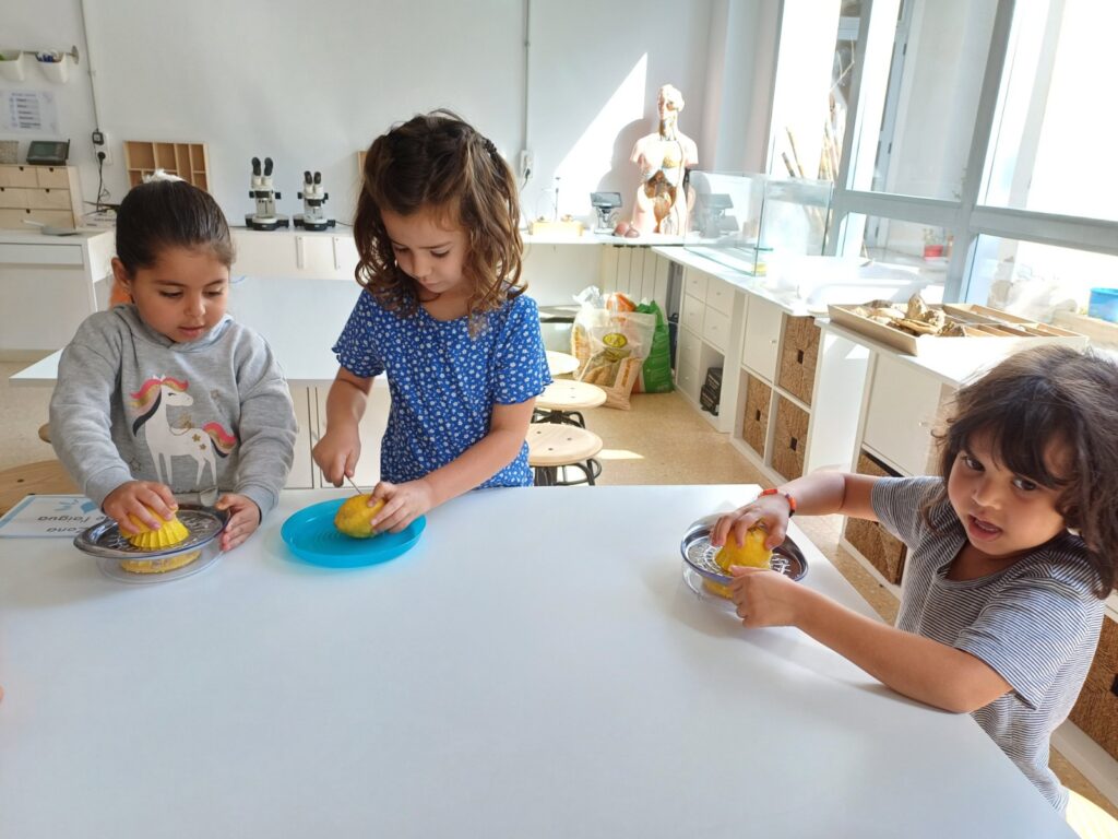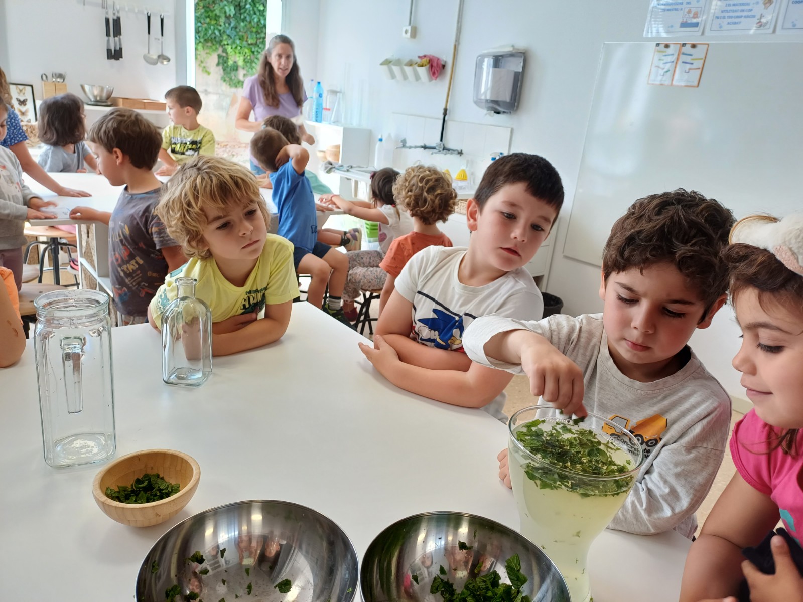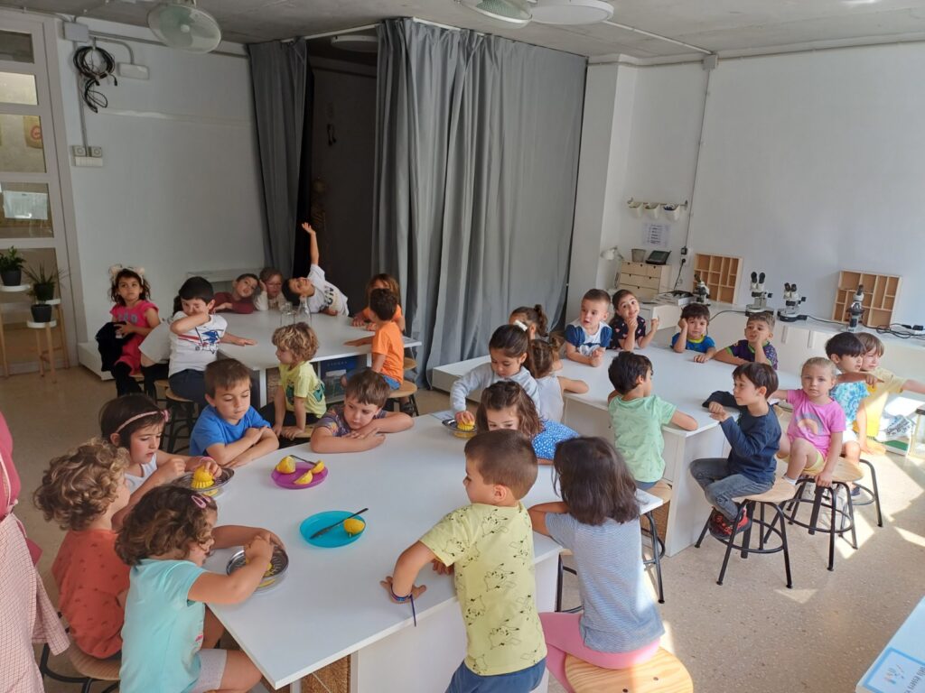 Hem fet llimonada! Hem aprofitat per anar a la sala de ciències dels infants de Primària. Un espai desconegut per a nosaltres. Un espai suggeridor, amb molt material i moltes coses per descobrir. Un espai de ciència. Entre totes i tots hem fet la llimonada. Fins i tot hem sortit a l’hort i hem agafat menta.