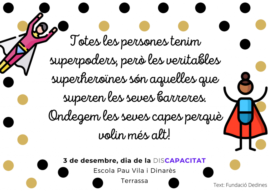 3 de desembre, Dia de la dis-CAPACITAT Feu un comentari / Per Escola Pau Vila i Dinarès / 3 de desembre de 2020 / General / diadeladiscapacitat, diversitat, escolainclusiva, inclusió