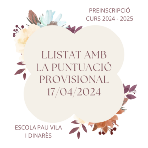 Informació puntuació provisional curs 24-25 Feu un comentari / Per Escola Pau Vila i Dinarès / 17 d'abril de 2024 / General / curs24-25, preinscripció, puntuacióprovisional (Clicant a la següent imatge trobareu informació sobre les sol·licituds per la inscripció al curs 24-25)