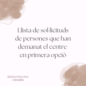 Llistat de sol·licituds de primera opció – Preinscripció 25 / 26 Feu un comentari / Per Escola Pau Vila i Dinarès / 25 d'abril de 2025 / General / curs25-26, preincripció25-26, preinscripció