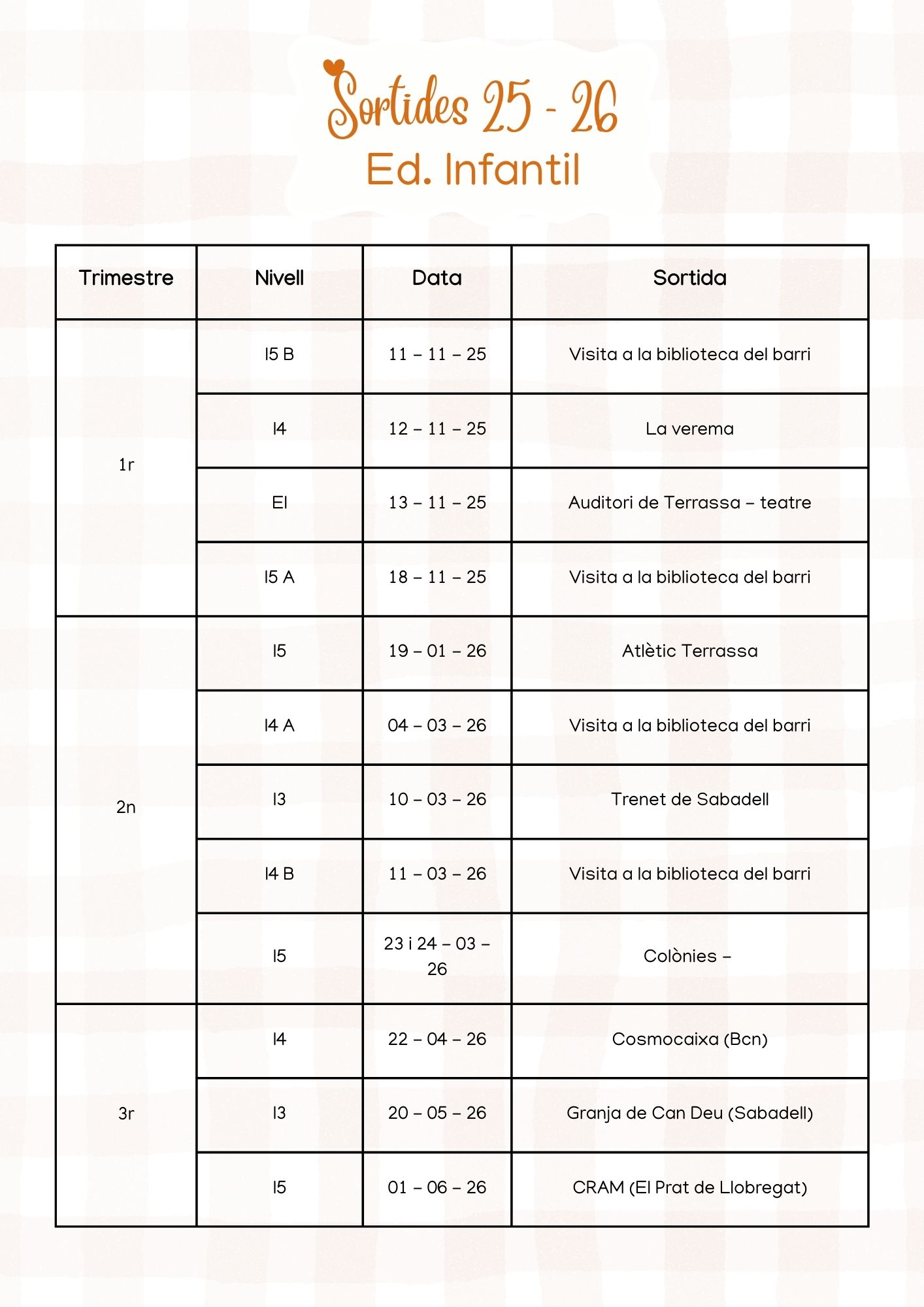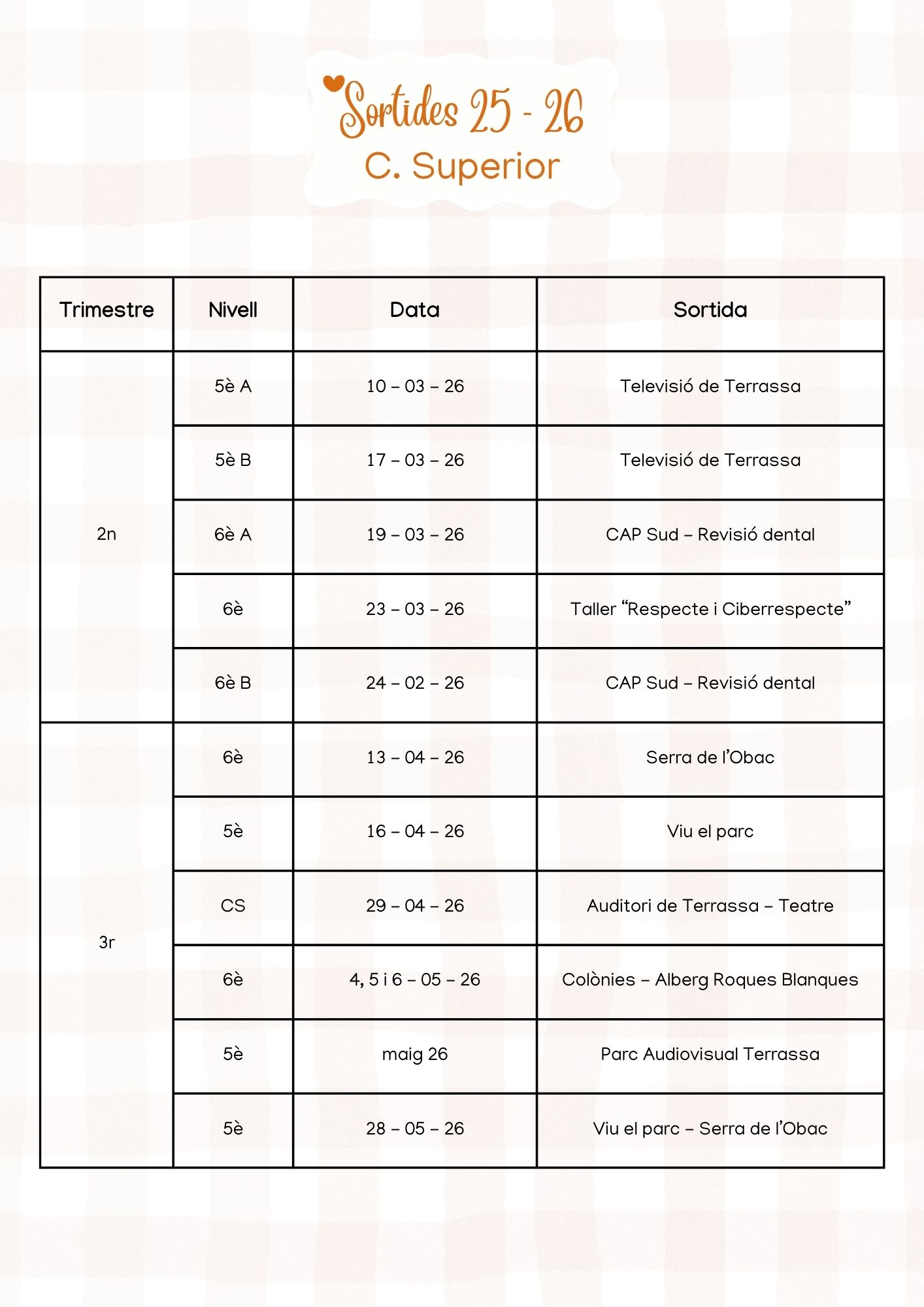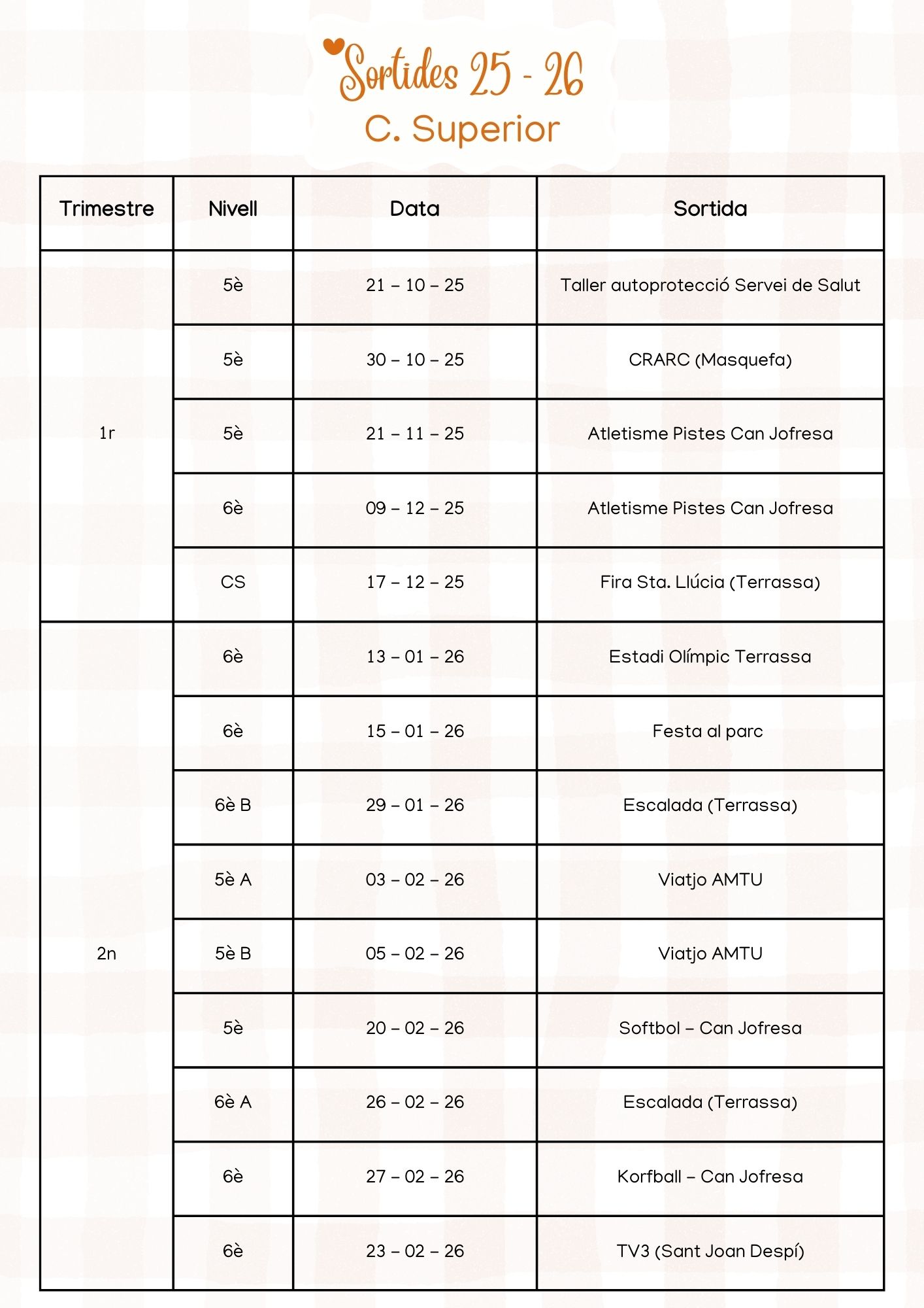 Sortides Curs 2025 – 2026