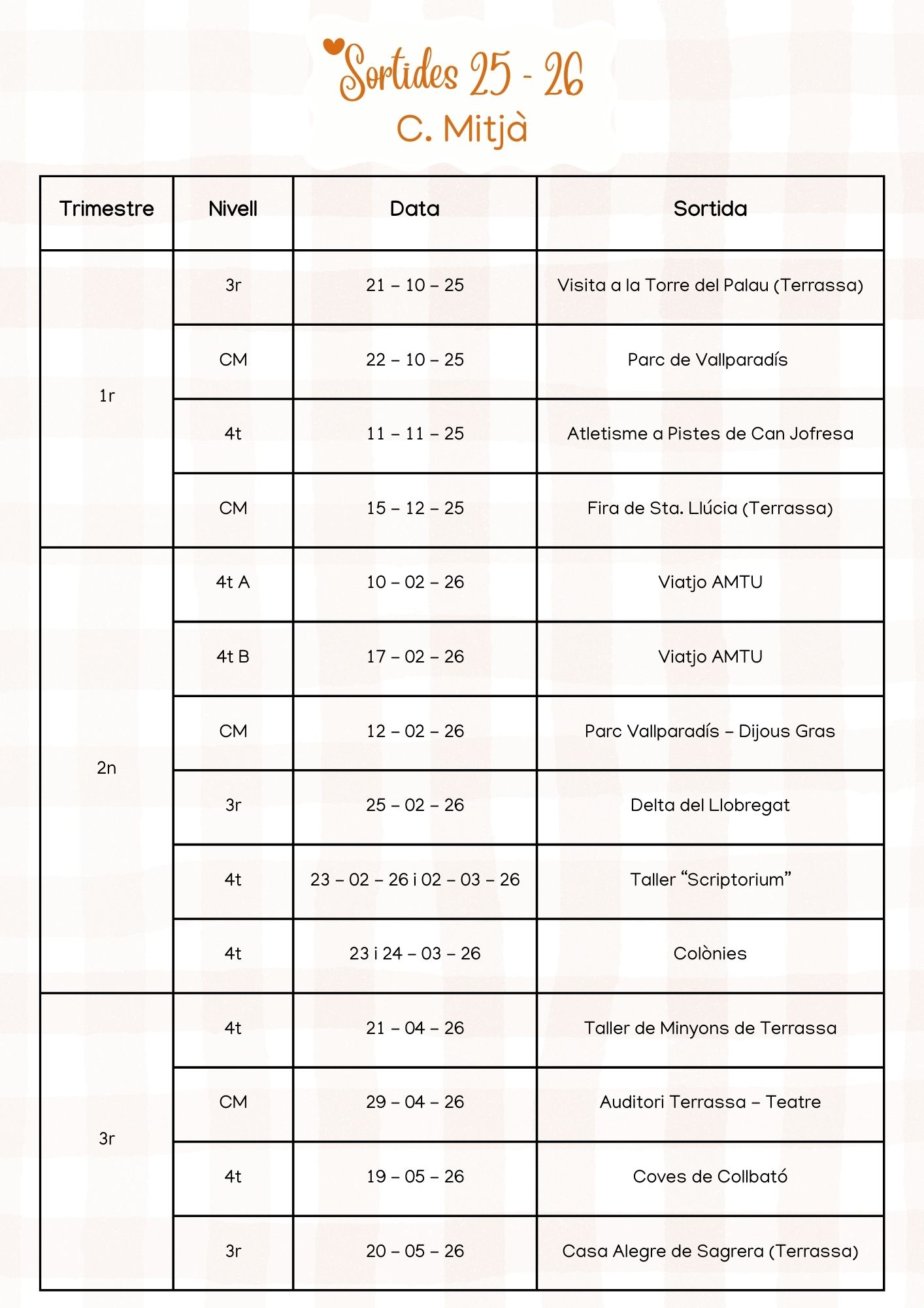 Sortides curs 25-26: