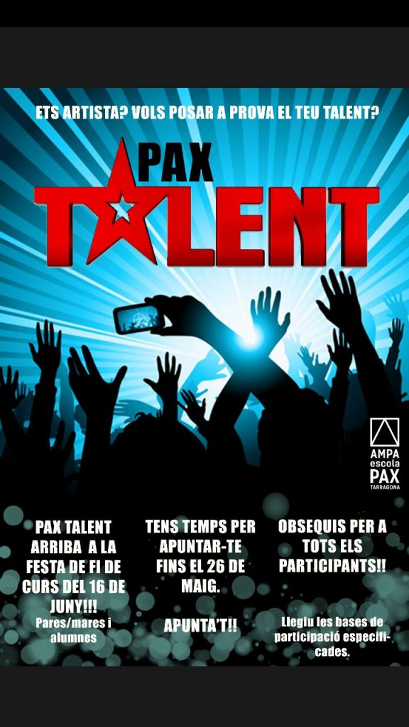 PAX TALENT, la novetat d’aquest any organitzada per l’AMPA. Tot un èxit!!!!Felicitem aquesta nova proposta !!