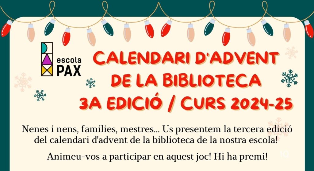Ja ha arribat la 3a edició del calendari d’advent de la biblioteca de l’escola. Animeu-vos a participar-hi!