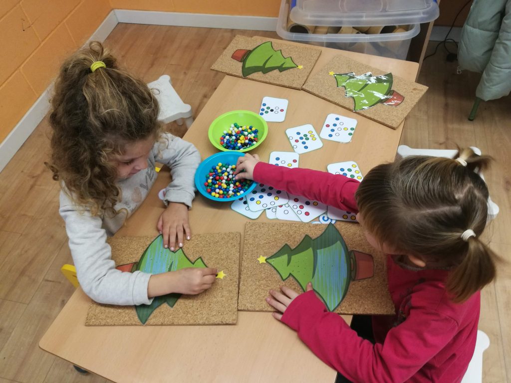 A P5 s’han fet propostes de treball nadalenques: receptes de sopa de galets, trencaclosques amb vocabulari de nadal, arbres per guarnir