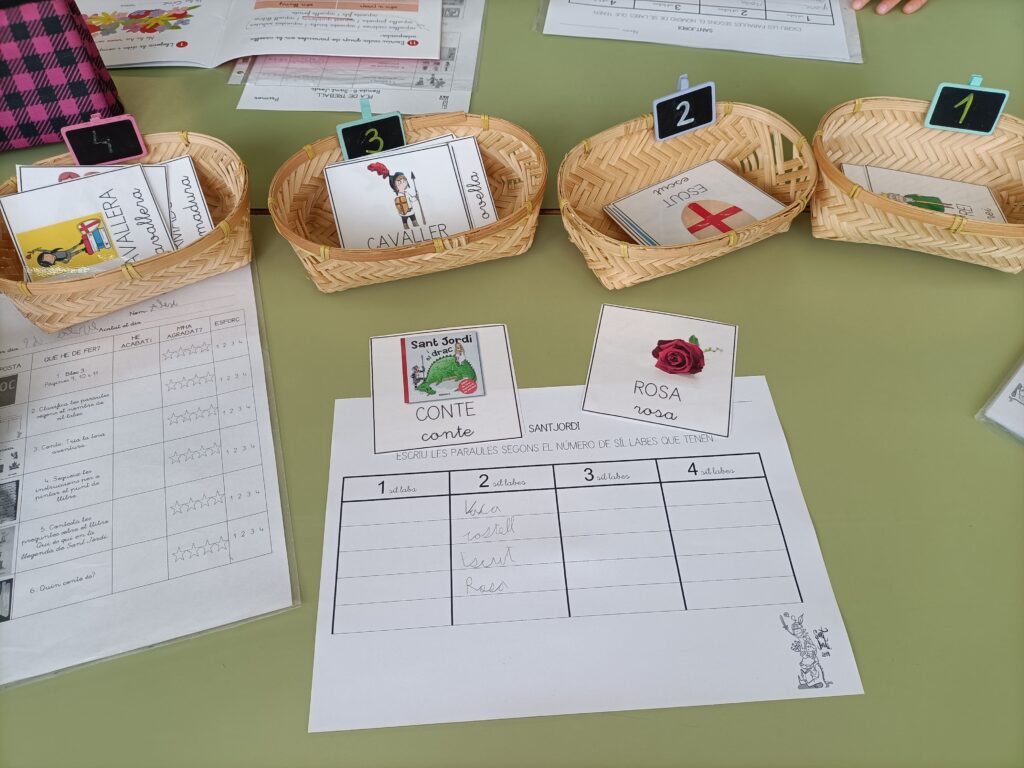Ja fa dies que, aprofitant que s’acostava Sant Jordi, els alumnes de 1r vam començar a treballar diferents propostes de llengua vinculades a aquesta diada. Han estat activitats molt lúdiques i engrescadores, pensades per fomentar l’aprenentatge de manera significativa i adaptada als diferents ritmes i interessos dels infants. Les propostes han inclòs activitats de lectura,