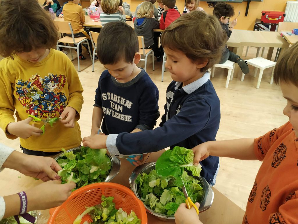 L’alumnat d’educació infantil ha gaudit moltíssim fent una amanida amb els enciams que van plantar, regar, cuidar i collir a l’hort de l’escola.