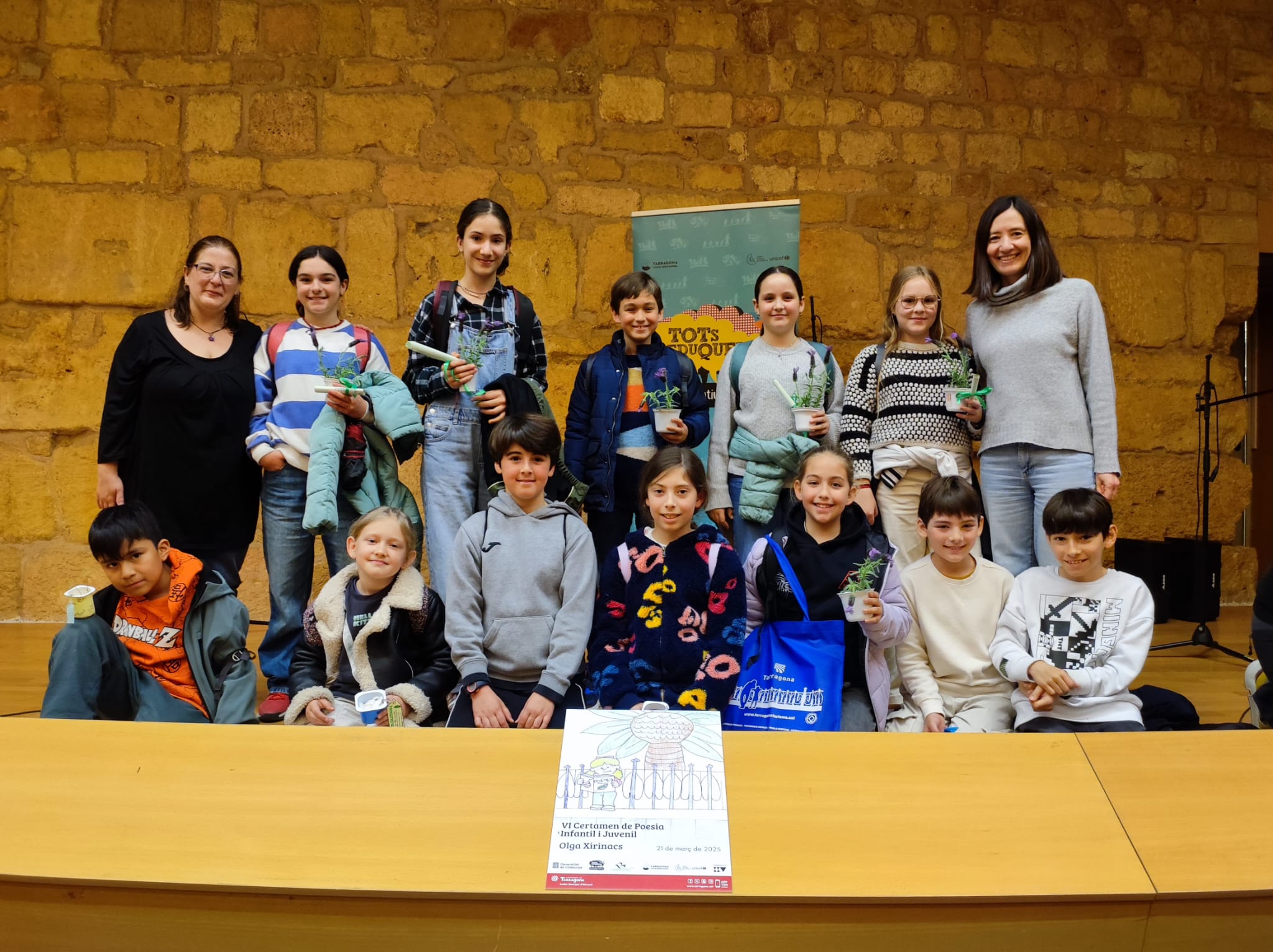 Aquest divendres, 21 de març, va ser el dia Mundial de la Poesia i una representació de l’alumnat de l’escola Pax va assistir, a l’Antiga Audiència, al lliurament de premis del VI Certamen de Poesia Olga Xirinacs. Els nens i les nenes de primària de l’escola han participat en aquest certamen escrivint el seu poema. L’alumnat de primer i segon han escrit poemes conjunts i a partir de tercer fins a sisè cada infant ha escrit el seu poema.
