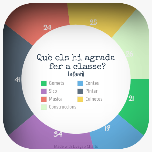 Als de 1r fins a 6é els hi agrada molt fer Educació Física i a I3 fins a I5 els hi agrada molt pintar.