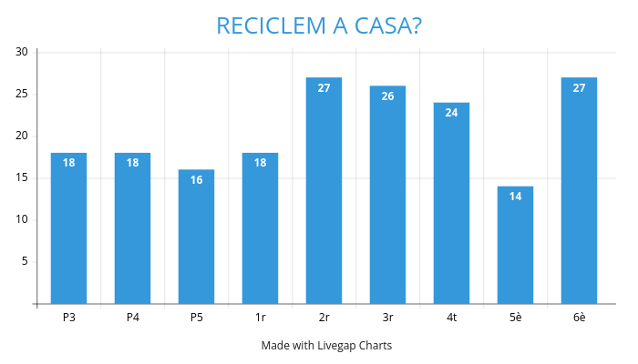 Per acabar hem fet una enquesta a l’alumnat de l’escola aprofitant que a partir de l’1 de desembre es farà el porta a porta al municipi, per saber si a casa ja estan conscienciats amb el tema de la separació de residus.