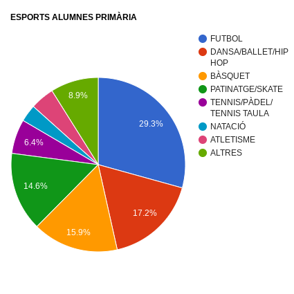 A primària l’esport que guanya per golejada és el futbol. En segona i tercera posició hi tenim el ball i el bàsquet.