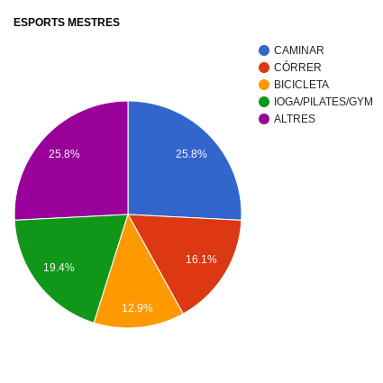 Pel que fa al professorat l’esport que més practiquen és anar a caminar i esports de manteniment com ioga, pilates i anar al gimnàs.