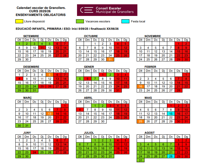 Calendari del curs 2025 – 2026