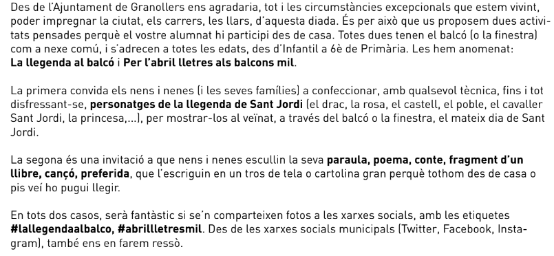 Us proposo fer una de les dues activitats de Sant Jordi que planteja aquest any l’Ajuntament de Granollers.