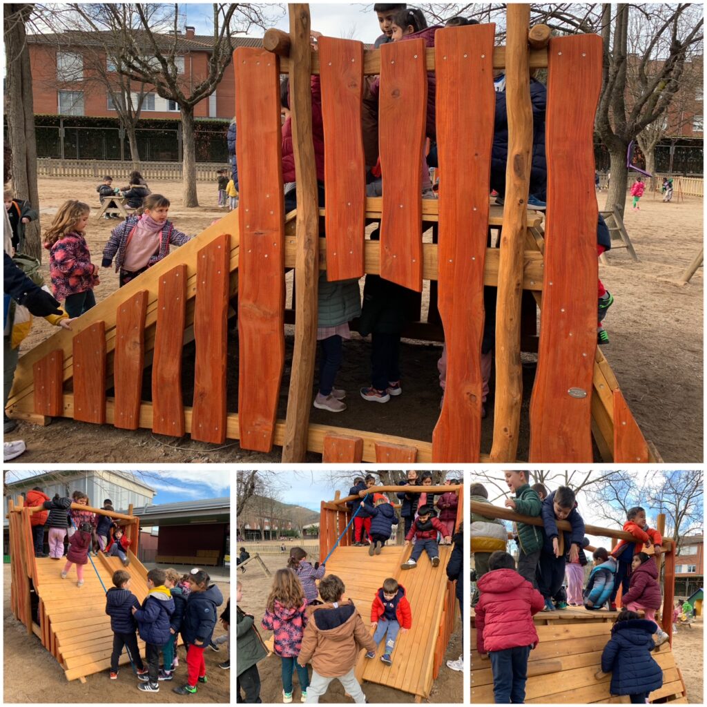 A finals del primer trimestre van començar a muntar al pati d’educació infantil una estructura de troncs molt xula “Una cabana cau” i avui n’hem pogut gaudir. Tots els nens i nenes estant molt contents!