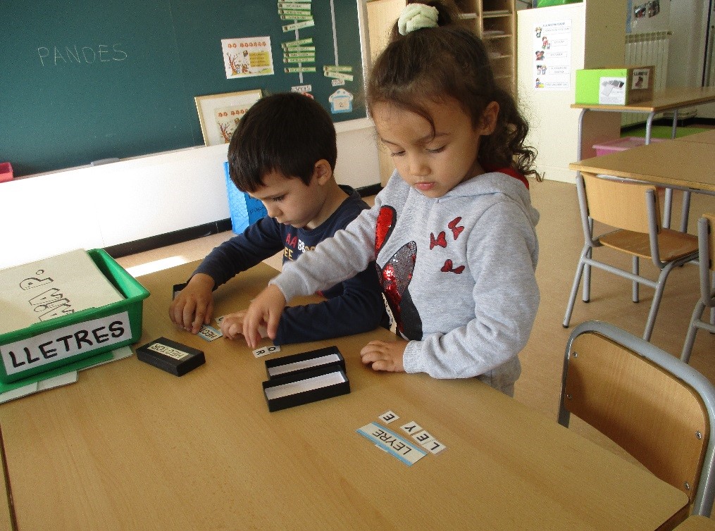 Als espais de racons de treball els nens i nenes de P4 i P5 aprofundim el treball dels nombres i les lletres. Oferim propostes tant de lectroescriptura com de matemàtiques amb innovamat i podem treballar de manera més individualitzada.