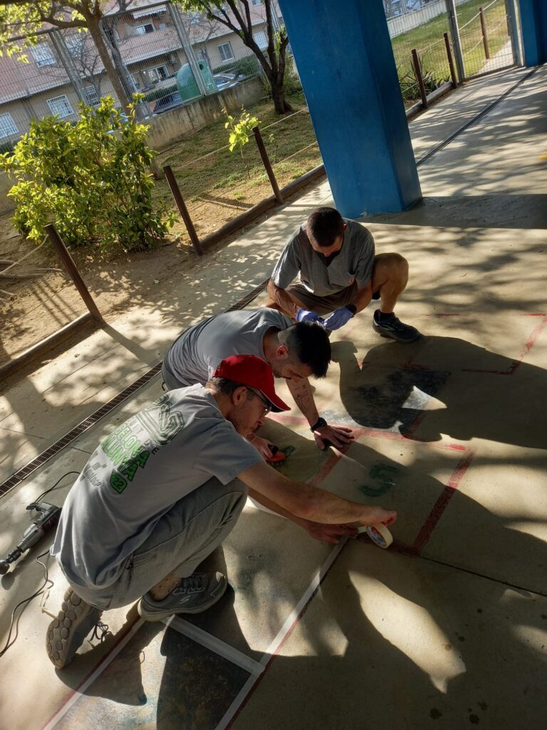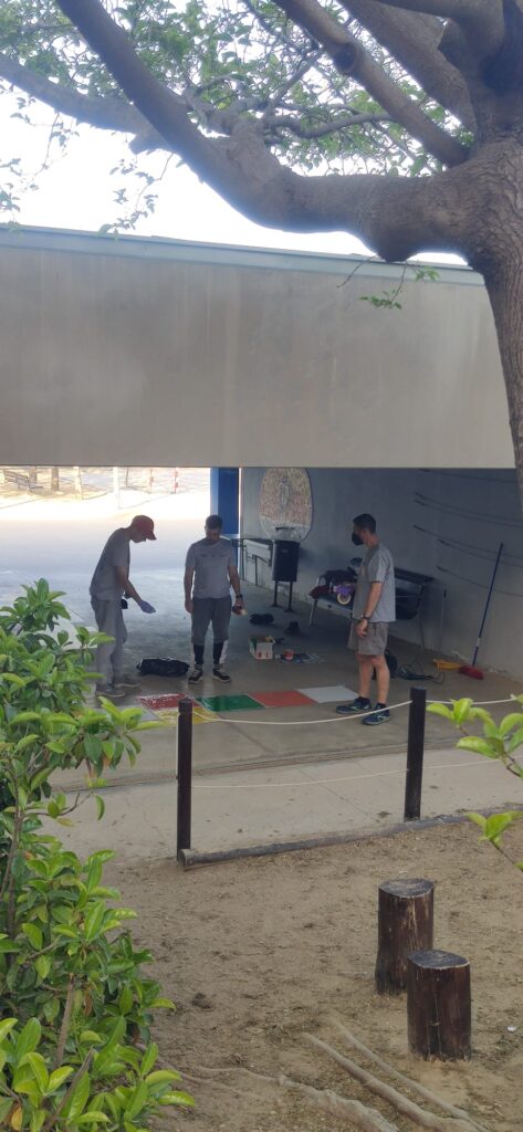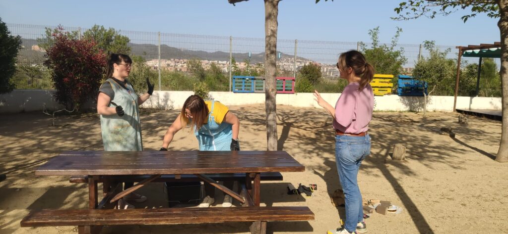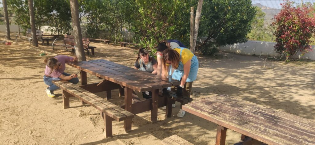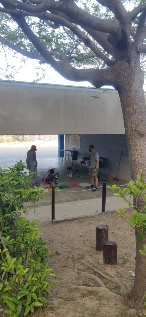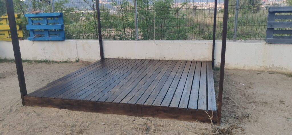 Durant la jornada, es van dur a terme diverses actuacions: es van llimar i envernissar les estructures de fusta, es va retirar la pintura del terra de la zona del porxo i es van tornar a pintar els jocs que hi havia. A més, volem destacar que la brigada de l’ajuntament va pintar el circuit de motos abans de Setmana Santa, contribuint també a la millora dels espais exteriors.