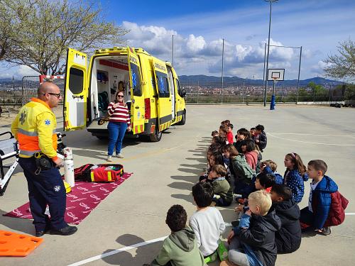 Els infants d’I5B hem fet una activitat conjunta amb els companys i les companyes d’I5A. Ha vingut el Javi, pare de l’Àlex d’I5A a explicar-nos el seu treball i ens ha ensenyat la seva ambulància i part de l’equipament que utilitzen en situacions d’emergència.