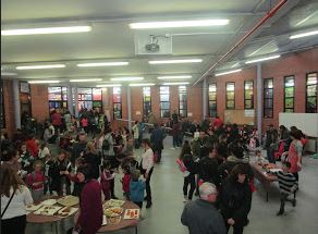 Aquest any desafortunadament no es va acompanyar el temps i vam haver de traslladar la festa als passadissos de l’escola. Vam haver de muntar les paradetes als diferents passadissos de l’escola ,amb els terrorífics pastissos que les famílies havien preparat amb molt de carinyo, imaginació i destresa.