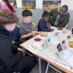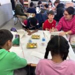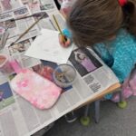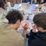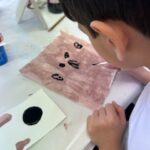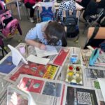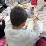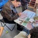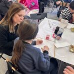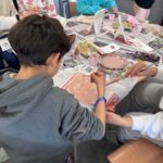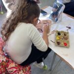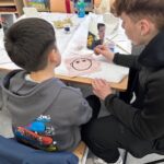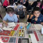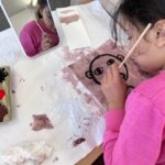 Els alumnes de 3r fem l’activitat amb famílies. Humanae és un projecte fotogràfic de l’artista Angélica Dass per reflexionar sobre el color de la pell de les persones que és únic i personal. Hem aprofitat per a treballar aquest concepte amb les famílies que ens acompanyen al llarg del taller. Visualitzem un document per fer una petita introducció sobre el projecte Humanae i ens posem a treballar. Tenim un mirall, pintures, pinzells, llapis, goma i ens decidim primer a dibuixar-nos la cara, els ulls, la boca, el nas, orelles, cabells…i el bust en una quadrícula de 21cm x 21cm i a continuació barregem la pintura fins a obtenir el nostra color de pell. Ho hem aconseguit? Un repte difícil d’aconseguir, però molt interessant!