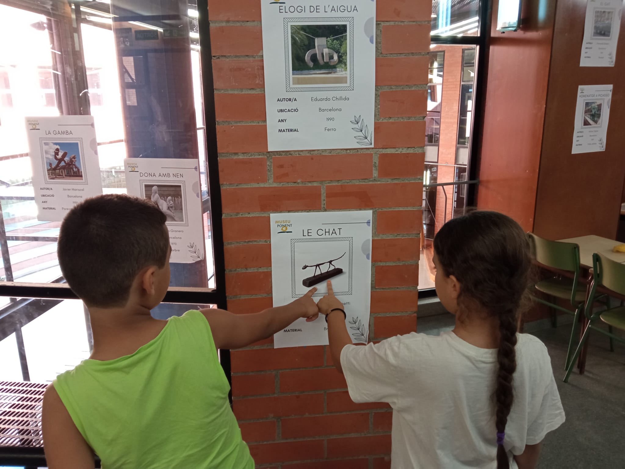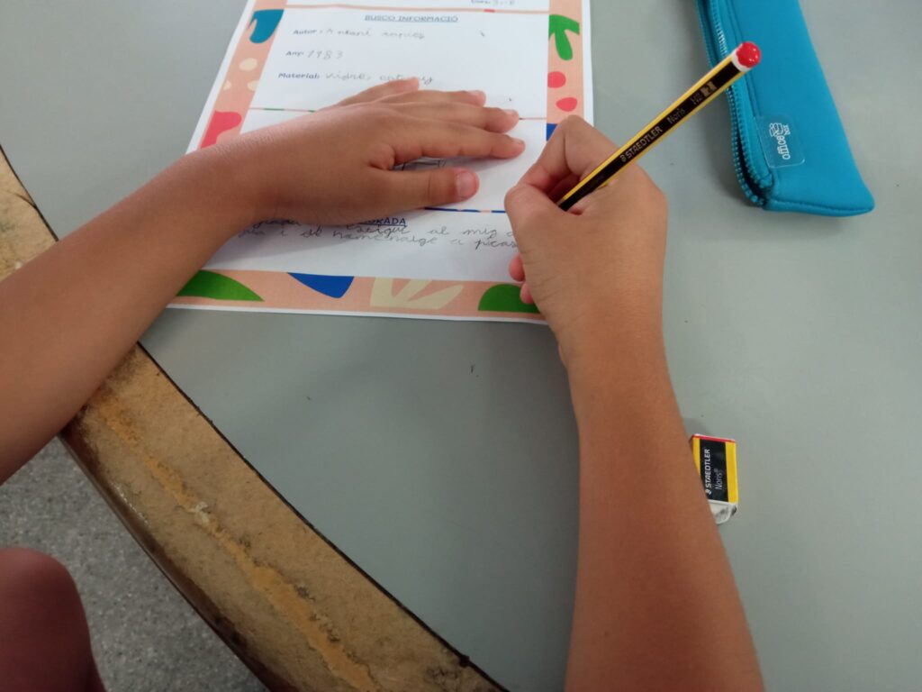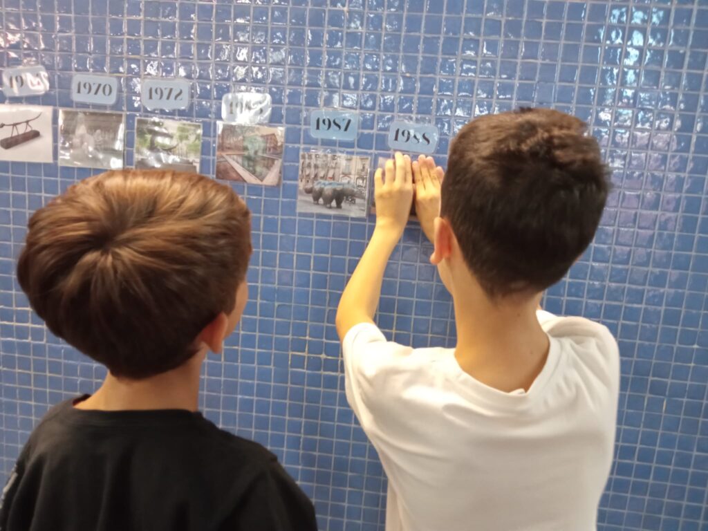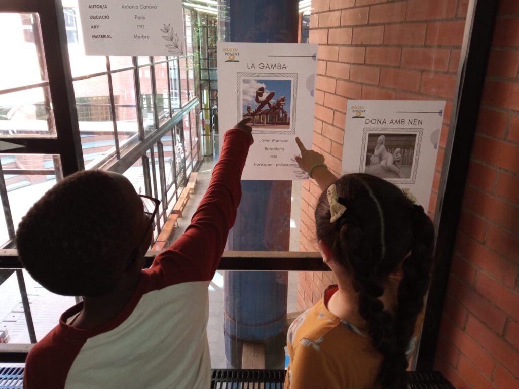 El primer dia d’escola vam trobar que al passadís de davant de les nostres classes hi havia penjat un museu d’escultures. El primer que vam fer és tenir una conversa tots i totes plegades per esbrinar què en sabíem sobre l’escultura. Seguidament, vam estar visitant el museu en grup, i de manera individual decidir quina era l’escultura que més ens agradava. Cada nen i nena va poder triar la seva escultura preferida. Un cop a classe, vam treballar les gràfiques de barres fent un recull de les preferències de cada nen i nena. Per continuar treballant matemàtiques he construït una línia del temps al passadís, activitat que hem fet les dues classes juntes. Un cop ho vam tenir vam poder triar l’escultura que donarà nom a cada classe.
