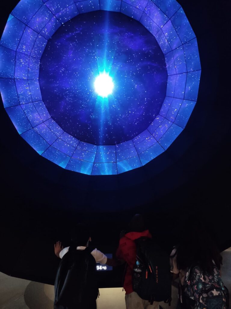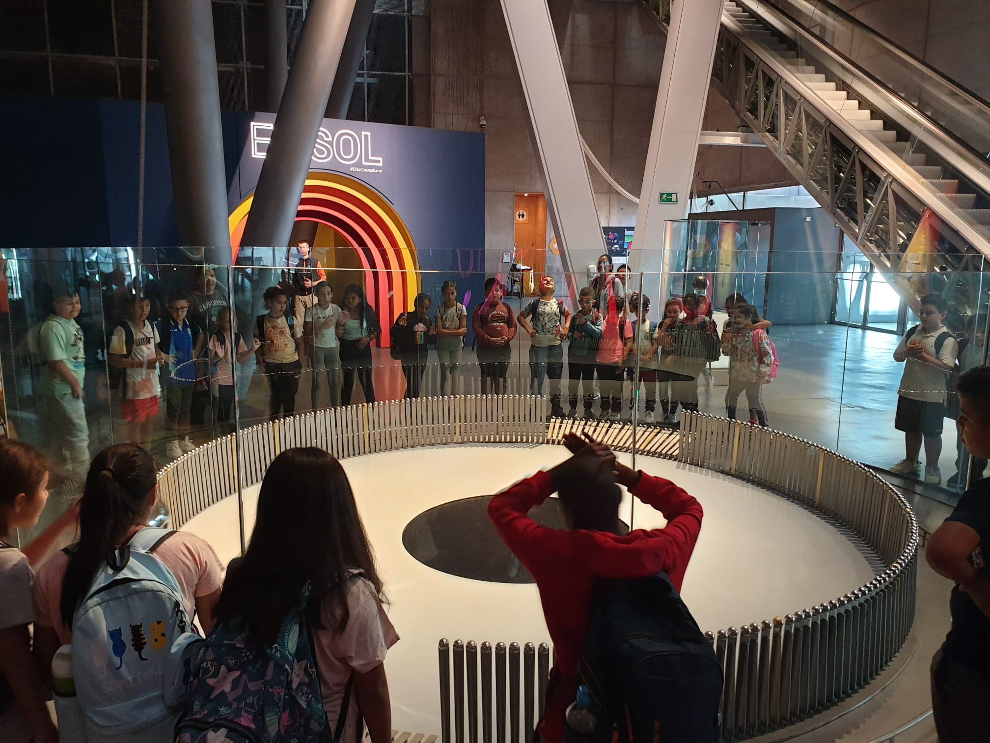 Quan hem arribat hem tingut temps per visitar el museu de manera lliure. Hem tingut la sort que una de les exposicions temporals que hem pogut visitar estava dedicada al Sol, l’estrella del nostre Sistema Solar. Hem pogut veure, llegir i experimentar diferents característiques del Sol. Una de les parts que més ens ha sorprès ha estat el poder comprovar com el moviment de rotació i translació de la Terra feia que en diferents parts del món el dia i la nit tenien llargades molt diferents.