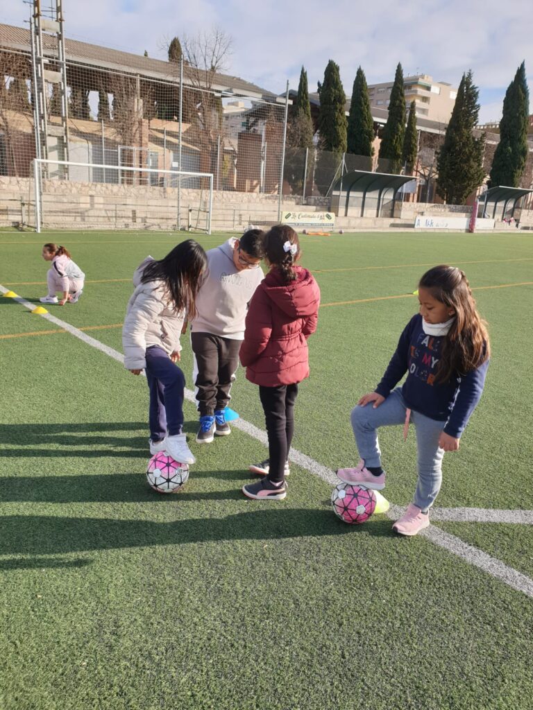 Aquestes setmanes estem fent futbol gràcies al club de futbol Ponent que ens ha convidat a entrenar unes hores. La idea és aproximar als nens i nenes a aquest esport i motivarlos perque el facin com a extraescolar.