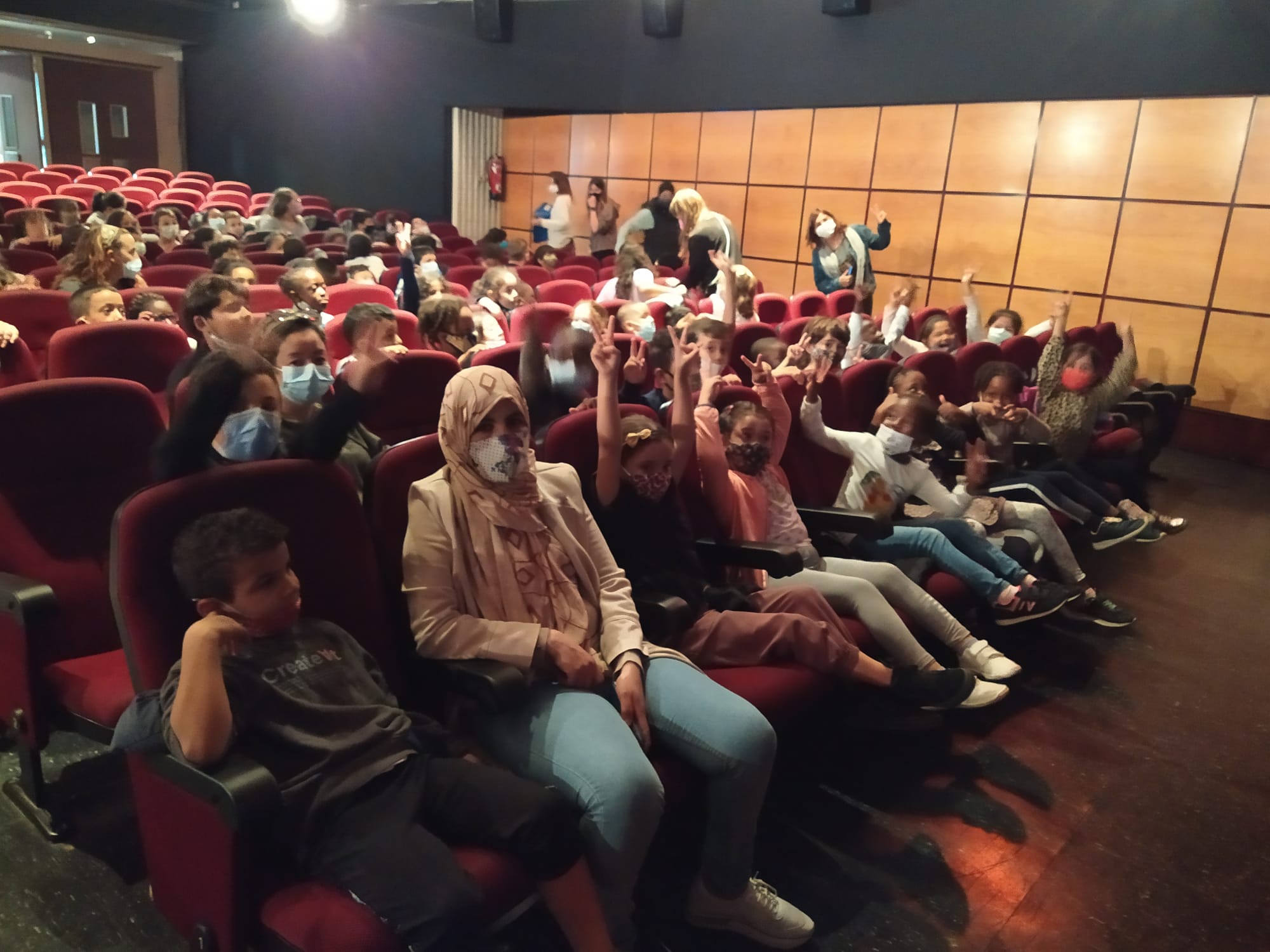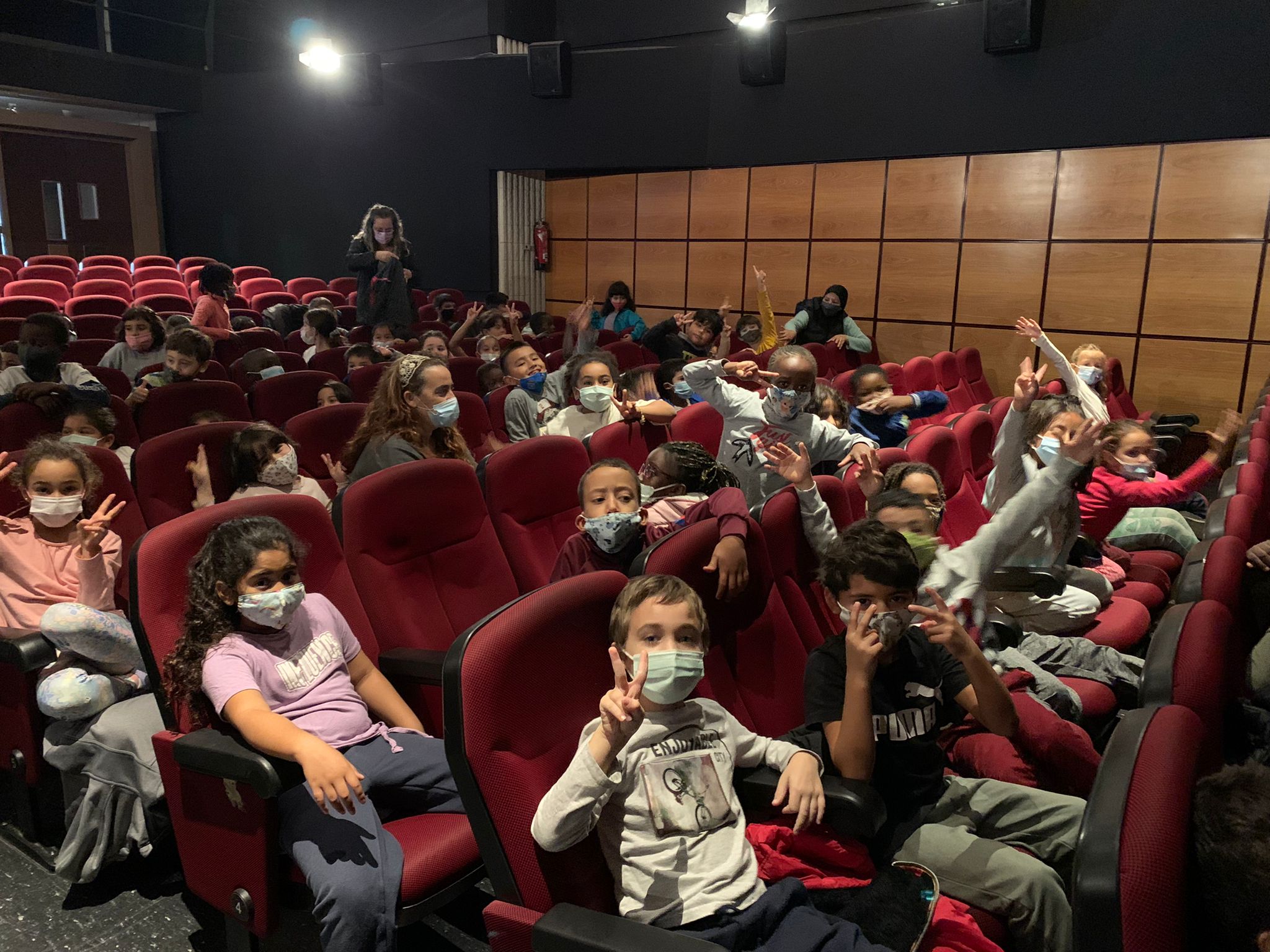 Hola, famílies de cicle inicial! Avui, tots els nens i nenes de 1r i 2n hem anat al cinema Edison per veure un espectacle de dansa anomenat “La Quela”.