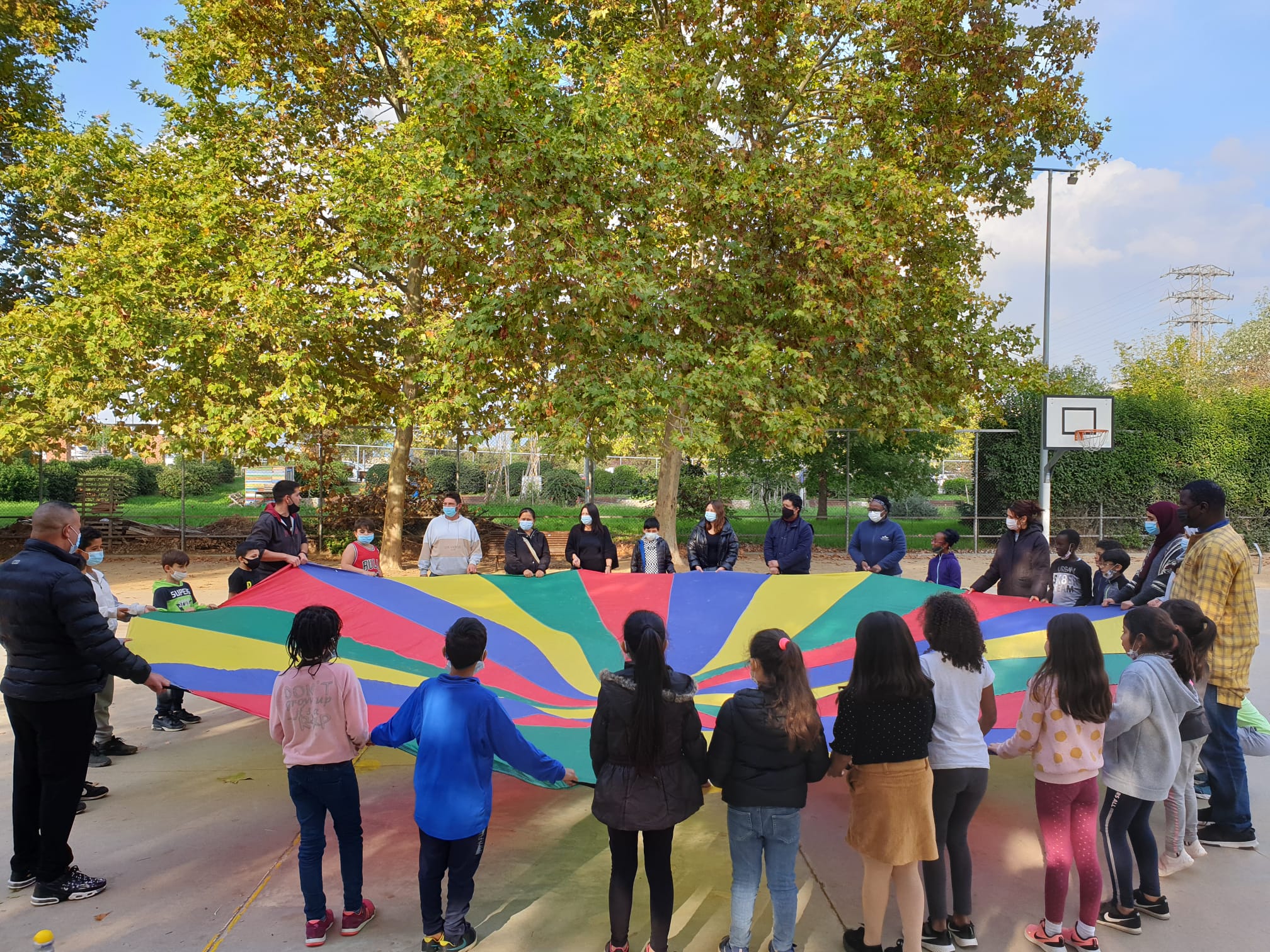 Les famílies de 3r B i els seus fills i filles han pogut gaudir d’una sessió d’educació física. Hem iniciat l’activitat fent un cercle de diàleg on tothom ha pogut presentar-se i dir-nos una cosa que ens agrada molt. Seguidament, hem jugat amb el paracaigudes. Aquest material ens permet fer un treball cooperatiu on entre tots i totes hem d’assolir el repte plantejat.