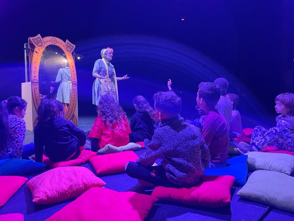 Hem passat pel hall, pel teatre gran i pel petit, hem escoltat una història: la de “més enllà dels miralls” i inclús també hem entrat als camerins.