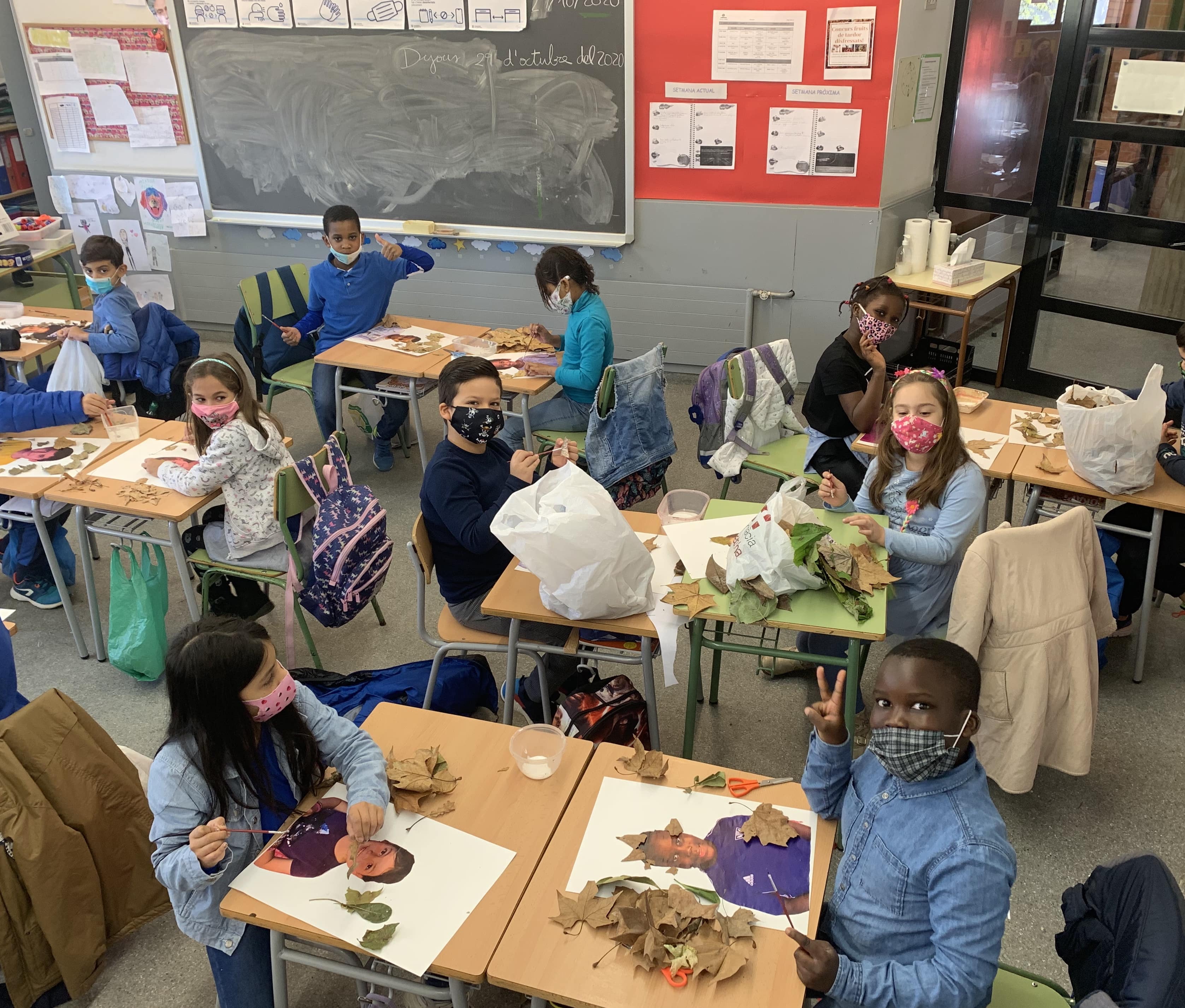 Aquesta setmana passada les nenes i nens de 3rB van fer un taller de plàstica sobre la tardor, i com que el grup de 3rA estava confinat, han pogut fer l’activitat aquesta setmana.