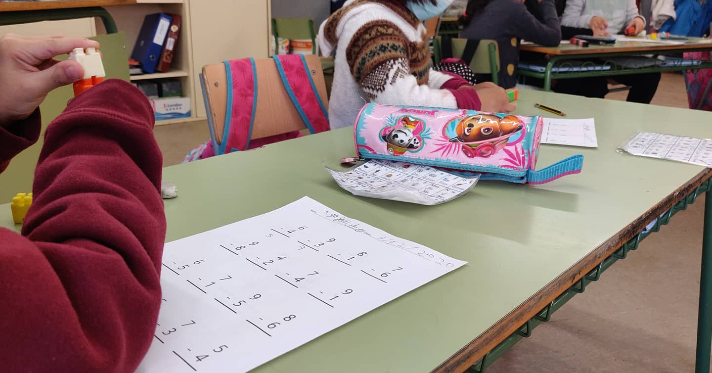 Les nenes i els nens de Primer estem treballant sumes, restes i la desena amb material manipulatiu.