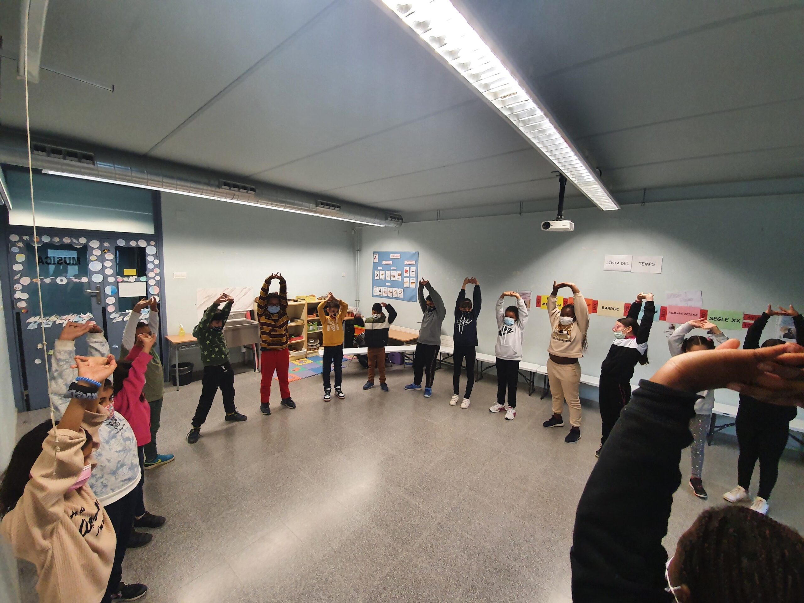 Aquest darrer mes hem estat aprenent i assajant la nadala amb l’alumnat de 4t. Per fer-ho, no només ens aprenem la lletra i la melodia sinó que també escalfem la nostra veu i activem el nostre cos amb diferents jocs i activitats.