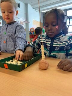 Mireu quina activitat més divertida estem fent els nens i nenes de P3! I és que això d’enfilar ens agrada i ens fa concentrar-nos molt!