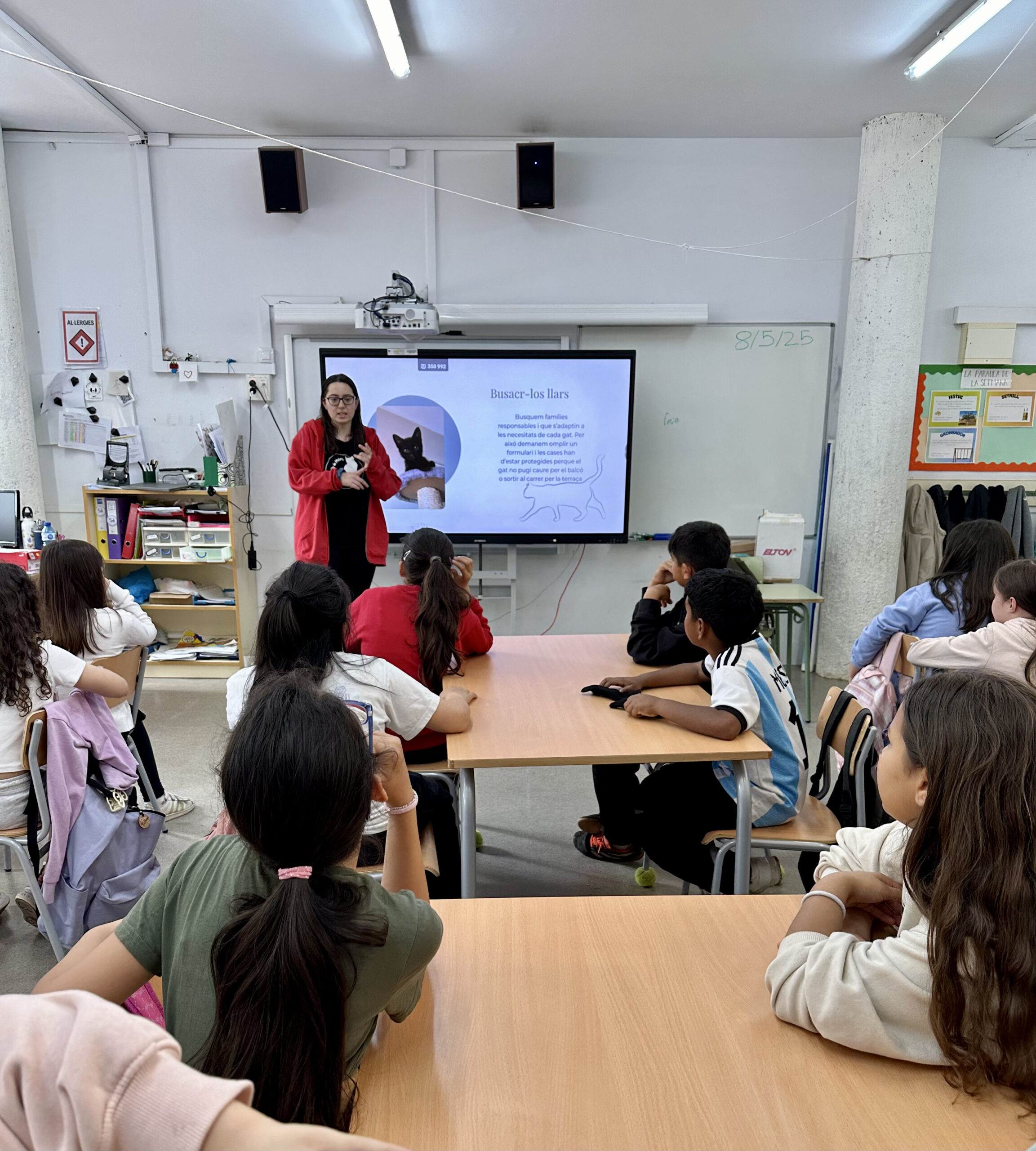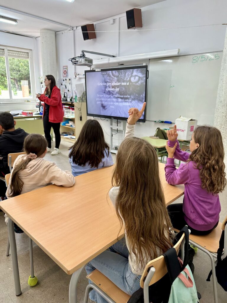 Avui ha vingut l’Ariadna, una de les voluntàries de l’associació @gatsdemolinsderei a explicar-nos tot el que fan (rescatar gats abandonats, buscar-los una llar, esterilitzar-los, portar-los al veterinari quan estan malalts…) i també, ens ha resolt moltes preguntes i curiositats que teníem. ![]()