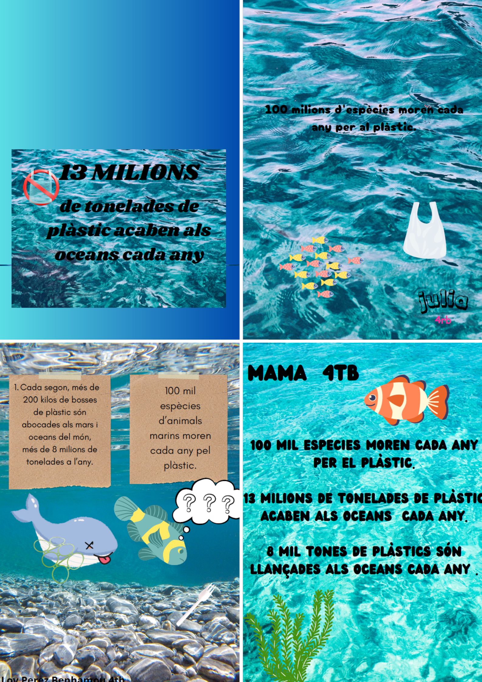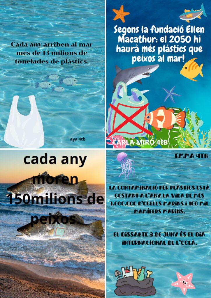 Vam decidir fer uns cartells perquè la gent s’adoni que hem de cuidar el mar. Per fer-los, vam utilitzar una aplicació que es diu CANVA.