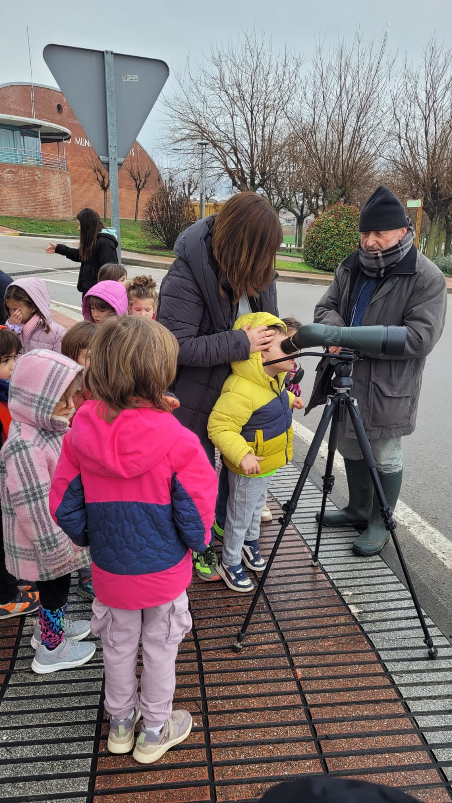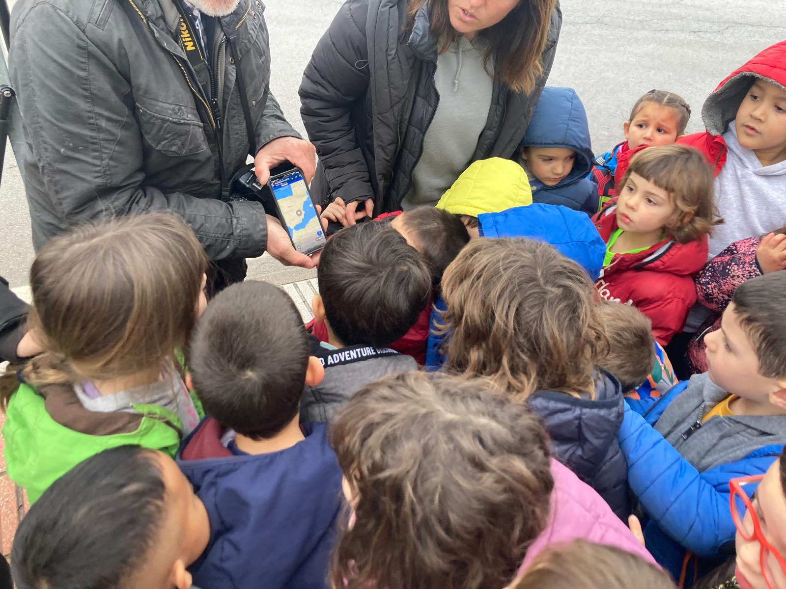Amb gran entusiasme, els infants hem caminat fins al camp del costat de l’escola, per poder veure aquestes majestuoses aus, de plumatge blanc i negre, en el seu viatge migratori.
