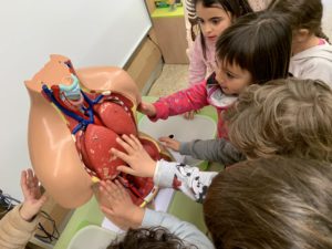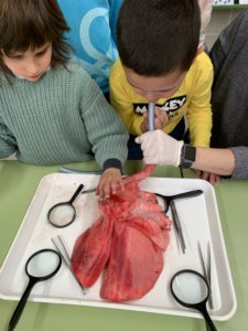 Hem INVESTIGAT el cos per dins observant diferents òrgans : un cor, uns pulmons i uns intestins. Hem pogut veure en directe com s’omplen d’aire els pulmons i n’hem DISSENYAT uns per a nosaltres. També ens hem escoltat el nostre cor, quan batega de pressa i quan ho fa a poc a poc.