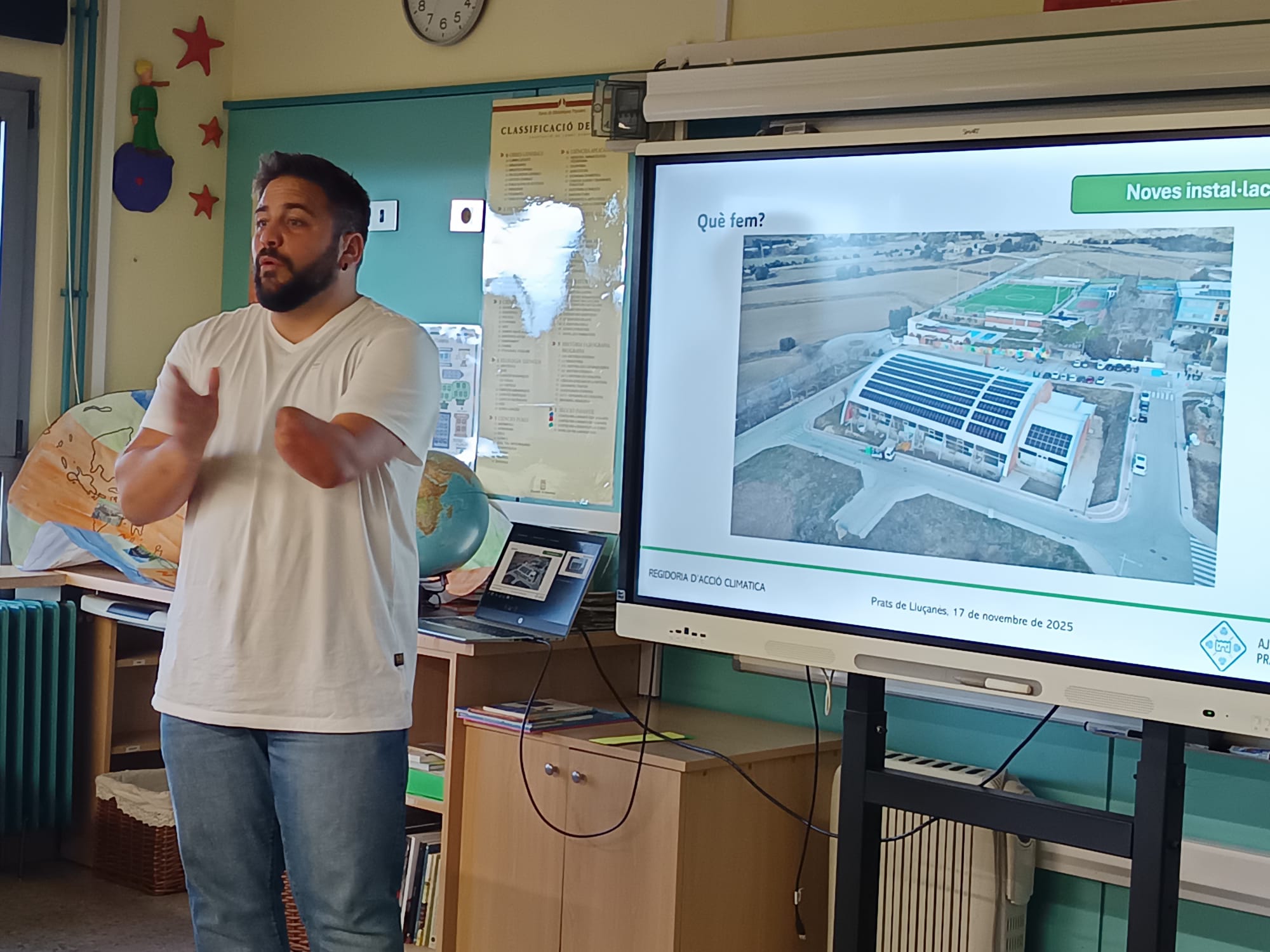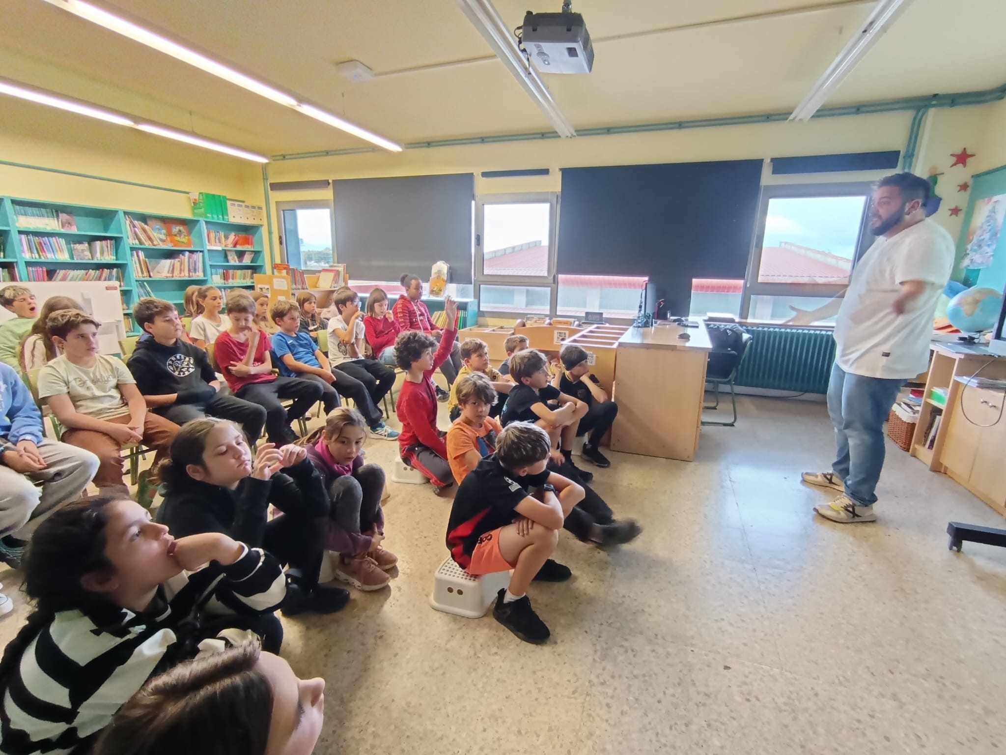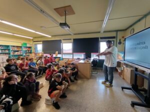 El regidor de Medi Ambient, Pep Peraire, ha visitat l’escola i ha estat explicant als alumnes de Cicle Superior aspectes relacionats amb l’estalvi energètic, el consum responsable, la importància de les energies renovables i la seva relació amb el medi ambient i les millores que s’han portat a terme a l’edifici de l’escola i als diferents equipaments municipals. Una activitat que s’engloba dins del projecte STEAM d’aquest primer trimestre.