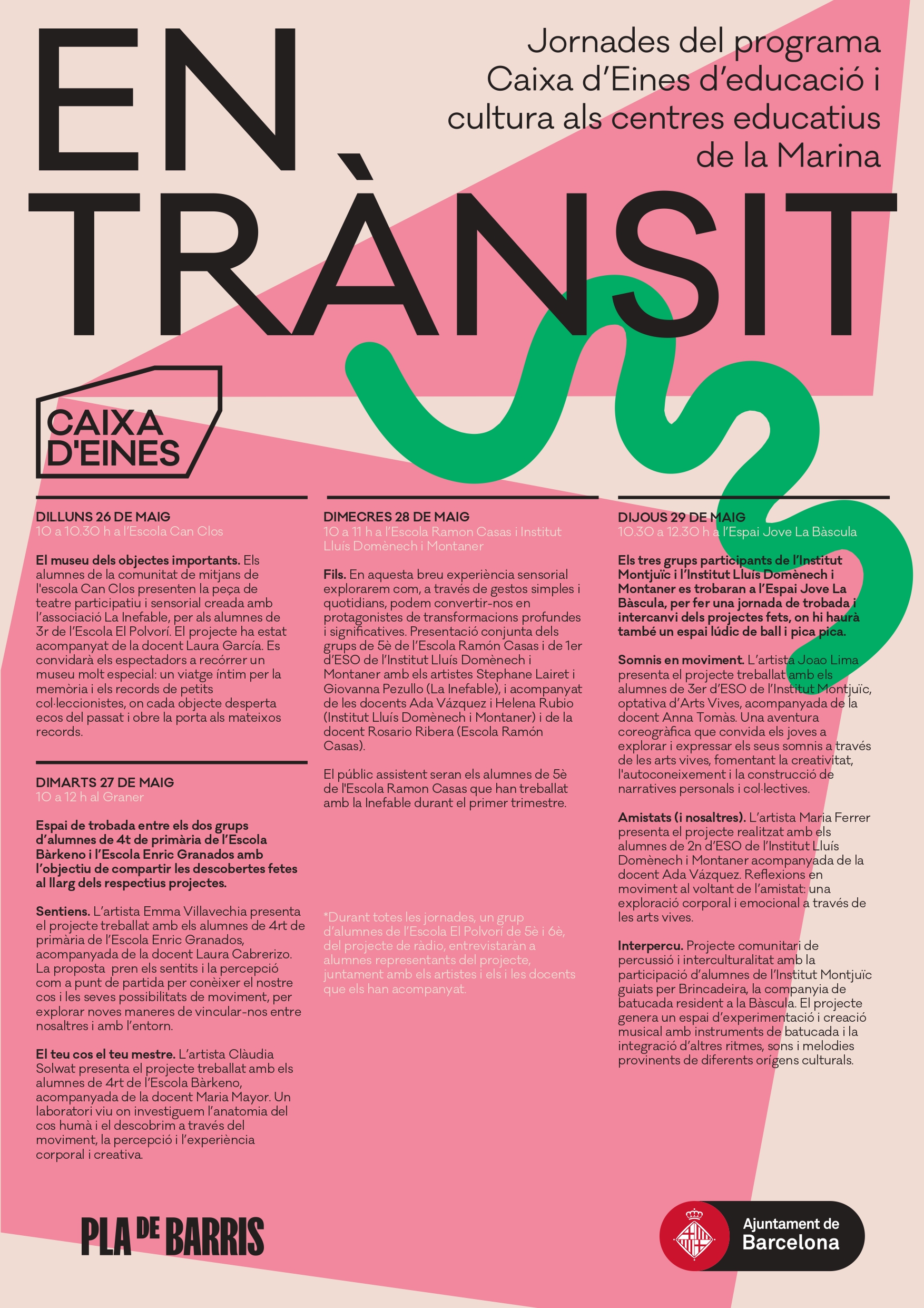 L’escola Ramon Casas participarà el proper dimecres a les Jornades En Trànsit, impulsades pel programa de Caixa d’Eines d’educació i cultura als centres educatius de la Marina del Pla de Barris de Barcelona.