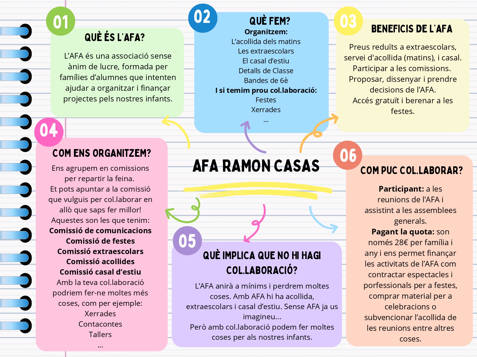 Des de l’AFA de l’Escola Ramon Casas treballem per fer millor la nostra escola.