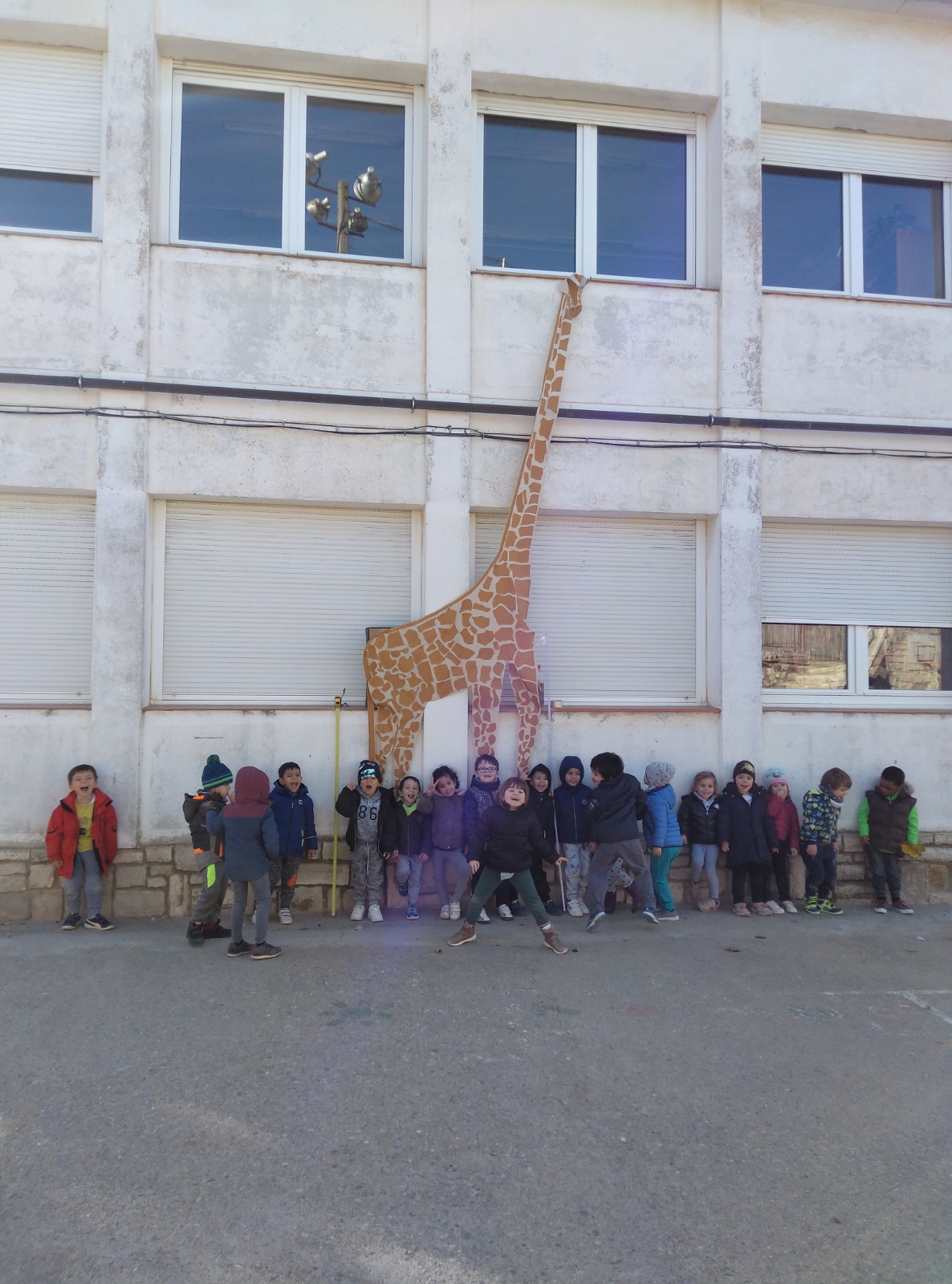 Ens vam mesurar però no li arribàvem ni a la panxa!! Vam necessitar 4 o 5 alumnes per ser tant alts com la girafa!