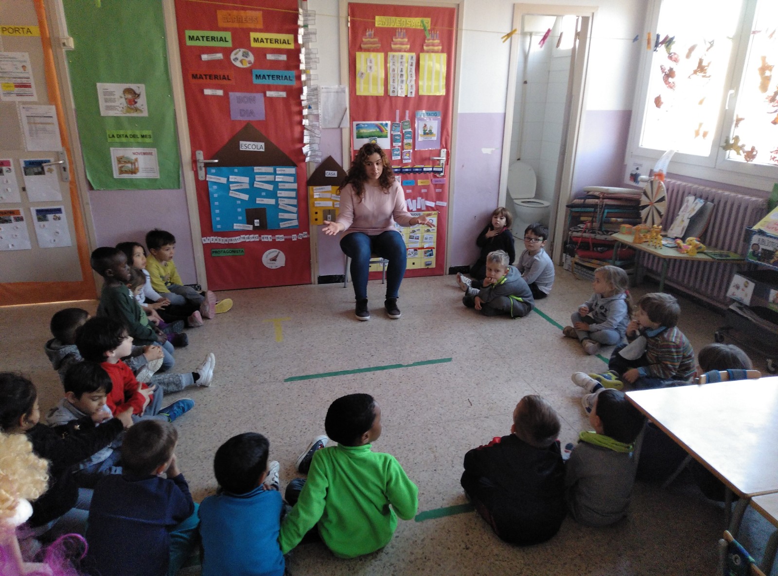 La tarda d’ahir va estar plena de sorpreses!! Vam tenir la visita de la Cristina que ens va portar una girafa de mida real, 5 metres d’alçada!!!!!!!!!!!!!!!! La Cristina, l’Adalès i l’Arnau ens van explicar com l’havien fet!
