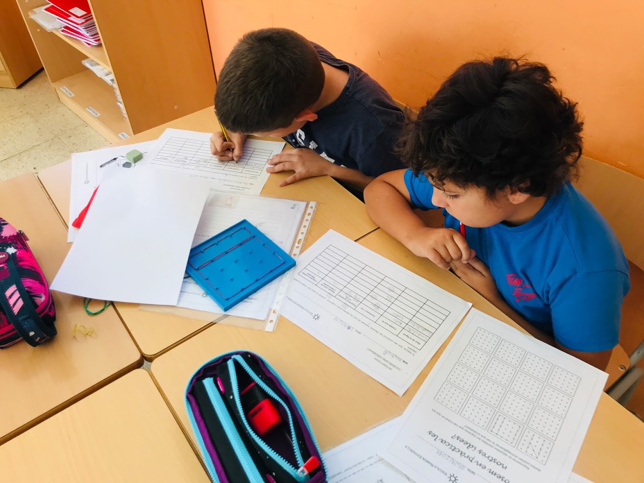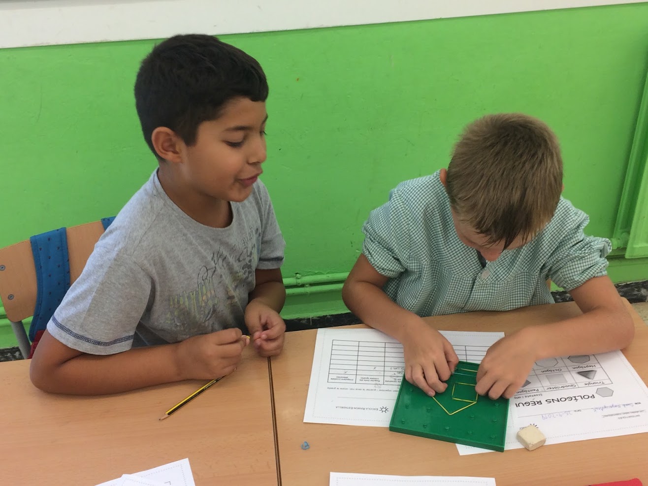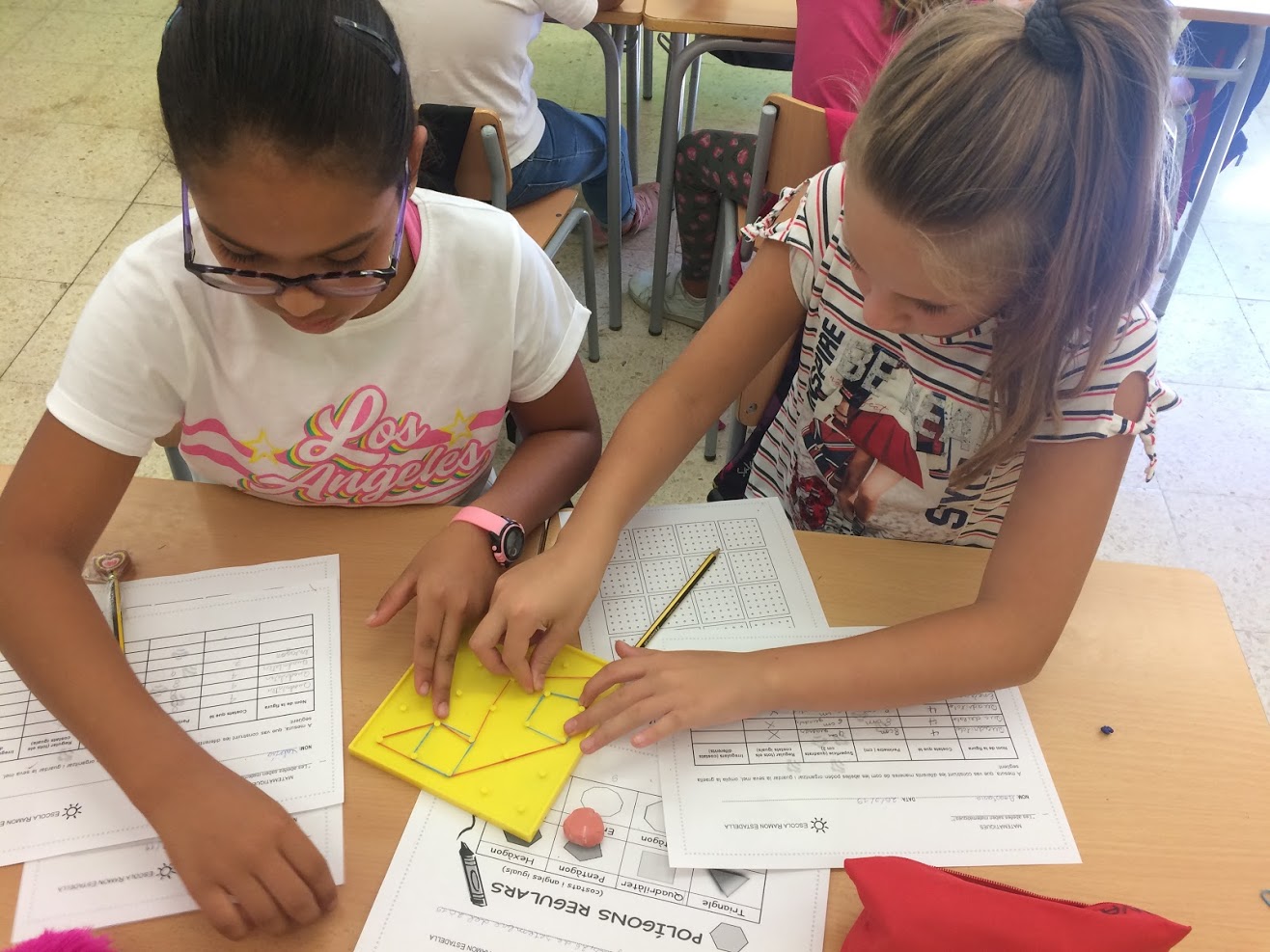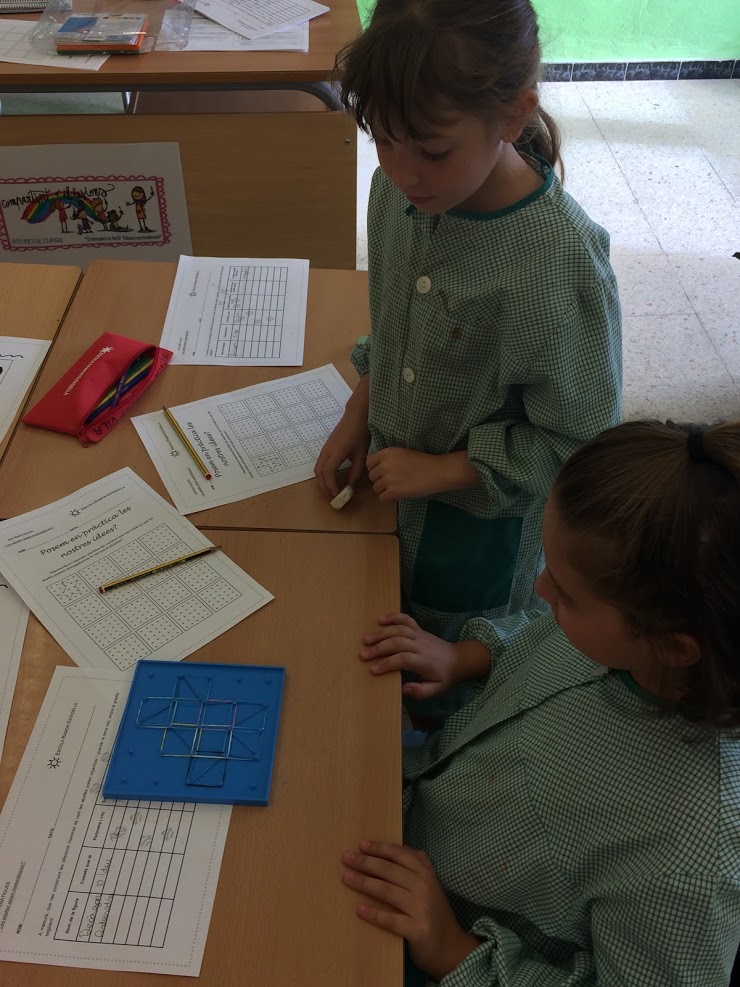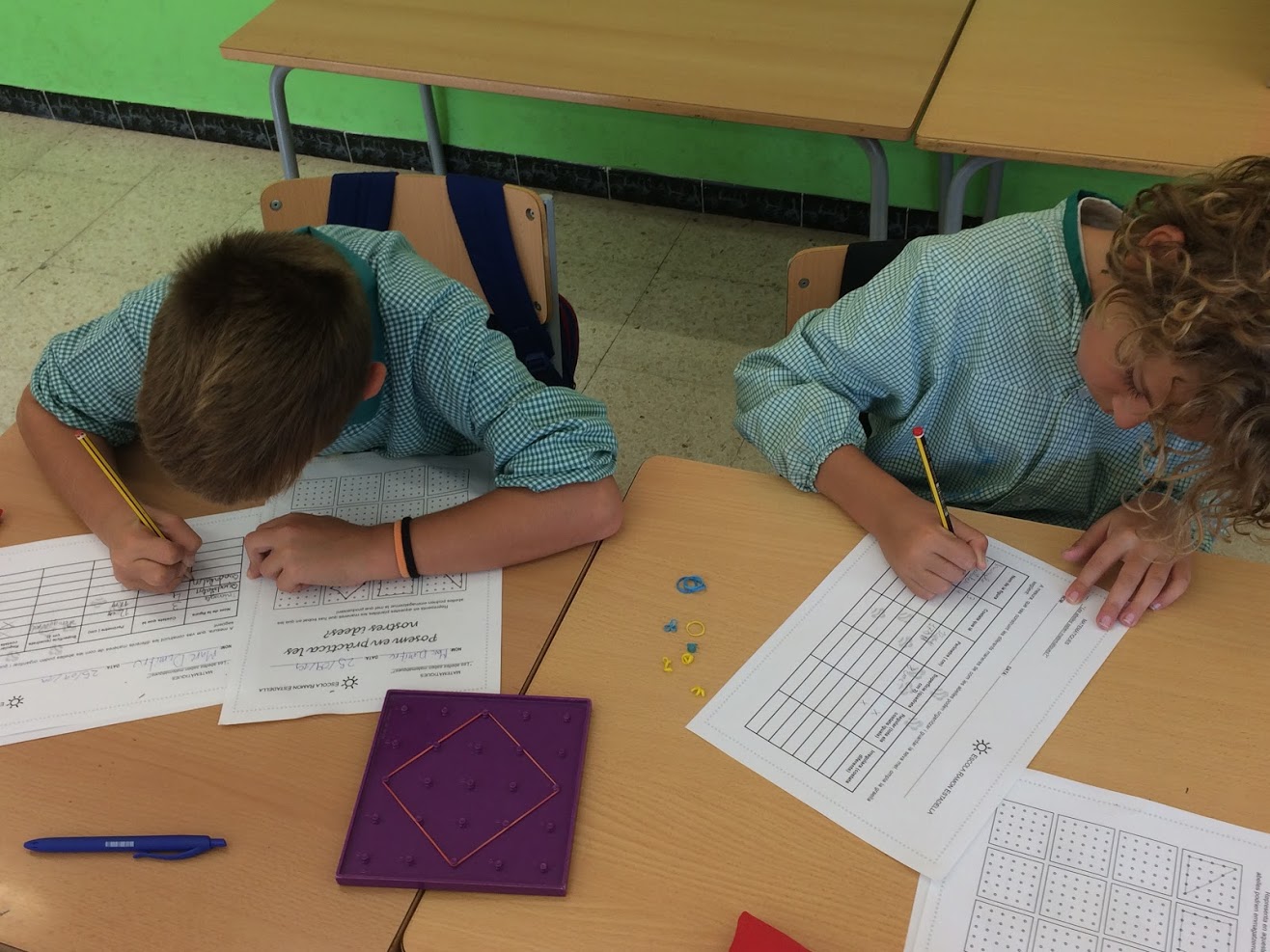 Durant la setmana, l’alumnat de 4rt, han estat fent d’abelles. Primer de tot, van veure un vídeo sobre les abelles. Tot seguit, van estar fent hipòtesi sobre la pregunta: Saben matemàtiques les abelles? Alguns/es nens i nenes van dir: ” Sí que en saben perquè han de calcular l’espai al rusc per tal de poder emmagatzemar la mel i hi han de cabre elles també”. Altres van dir que no; “No són tan intel·ligents perquè si ho fossin no ens picarien ja que moren”. Després d’aquestes hipòtesi, van començar a treballar amb els geoplans. Van inventar figures i van estar treballant sobre elles. Un cop ja havien vist diferents figures, van fer d’abelles. En una quadrícula, havien d’escollir una figura, ja fos inventada o no, i l’havien de dibuixar tantes vegades com poguèssin. Ara només ens falta saber quina és la figura es repeteix més i que abarca més superfície de la quadrícula.