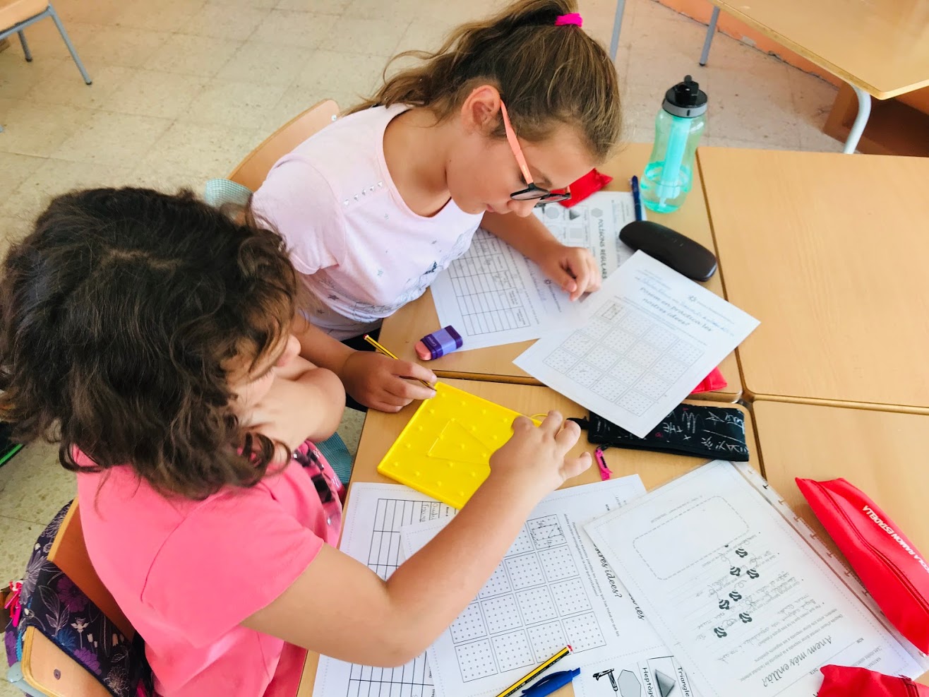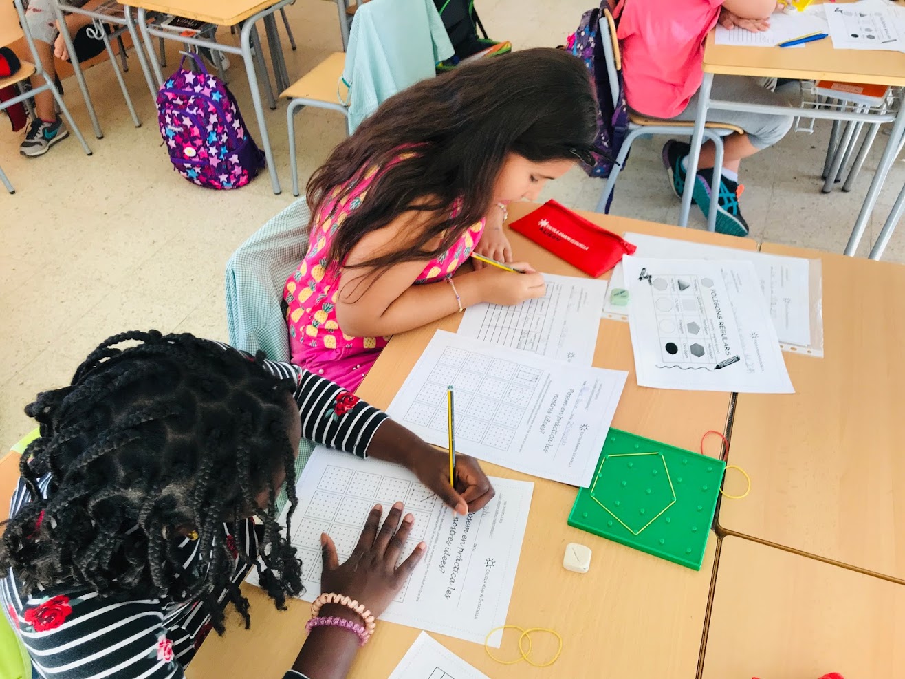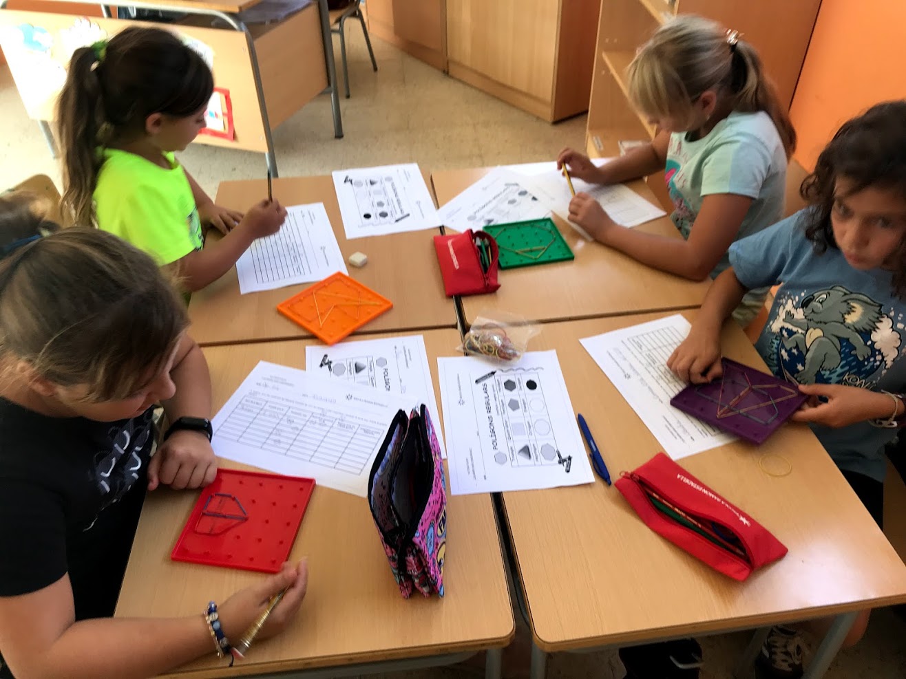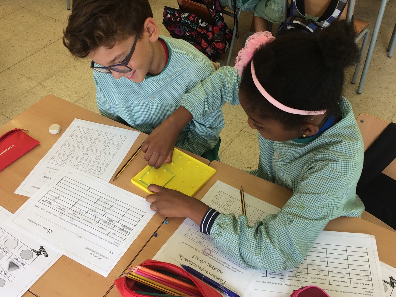 Durant la setmana, l’alumnat de 4rt, han estat fent d’abelles. Primer de tot, van veure un vídeo sobre les abelles. Tot seguit, van estar fent hipòtesi sobre la pregunta: Saben matemàtiques les abelles? Alguns/es nens i nenes van dir: ” Sí que en saben perquè han de calcular l’espai al rusc per tal de poder emmagatzemar la mel i hi han de cabre elles també”. Altres van dir que no; “No són tan intel·ligents perquè si ho fossin no ens picarien ja que moren”. Després d’aquestes hipòtesi, van començar a treballar amb els geoplans. Van inventar figures i van estar treballant sobre elles. Un cop ja havien vist diferents figures, van fer d’abelles. En una quadrícula, havien d’escollir una figura, ja fos inventada o no, i l’havien de dibuixar tantes vegades com poguèssin. Ara només ens falta saber quina és la figura es repeteix més i que abarca més superfície de la quadrícula.