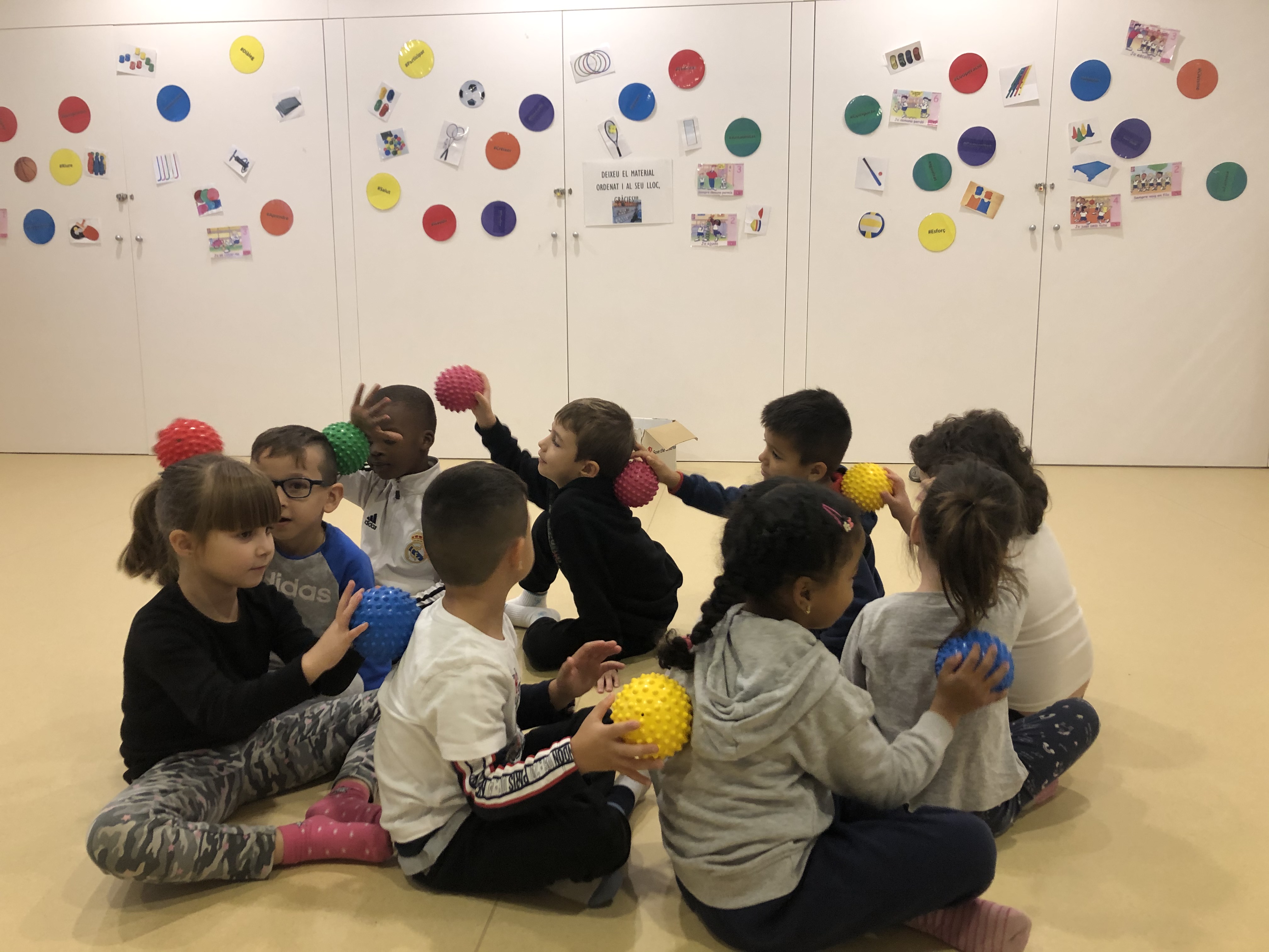 A l’hora de Psicomotricitat a infantil ens ho passem molt bé amb les diferents activitats que fem i intentant acompanyar i ajudar als infants en el seu procés de maduració global. Comencem les sessions on l’alumnat reprodueix la paraula de PSI-CO-MO-TRI-CI-TAT amb diferents parts del cos i explicant la sessió i les consignes per a que tot funcioni bé. Treballem amb el diferent material creant un espai de joc sensoriomotor respectant el propi ritme de cada alumne i també es deixa temps pel joc simbòlic. Com a cloenda recollim el material, parlem de com ha anat la sessió, com s’han sentit i fem la relaxació a partir de la pràctica de ioga i la respiració per tornar a la calma.